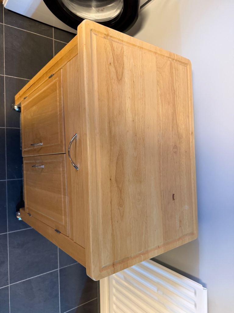 Lovely solid wooden kitchen island trolley on wheels, great for extra workspace or storage.