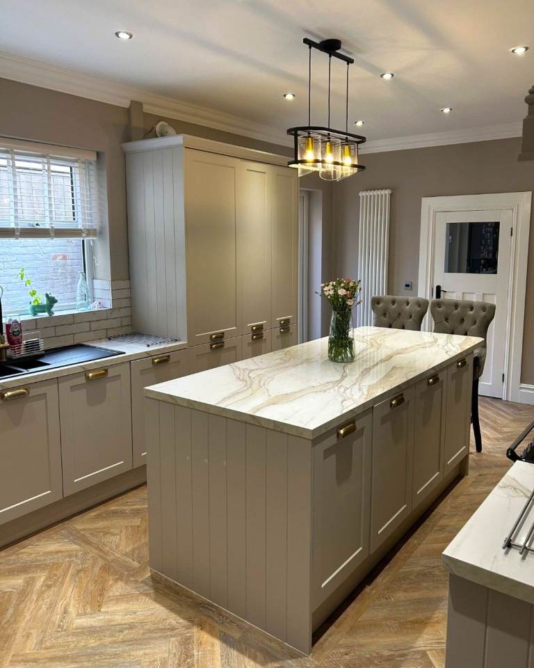 Wren Luxury Laminate Kitchen Worktops Countertops and TekWall/Splashback in Calacatta Gold - priced to Clear.