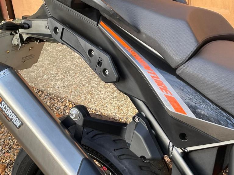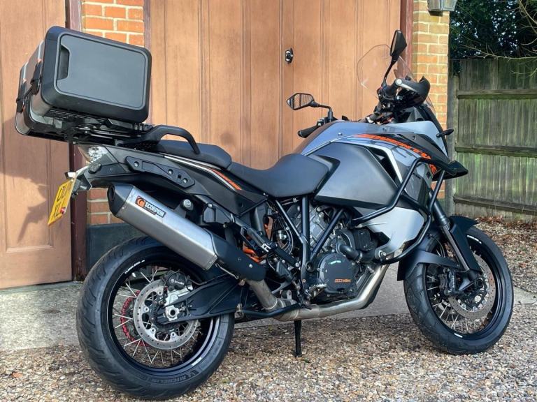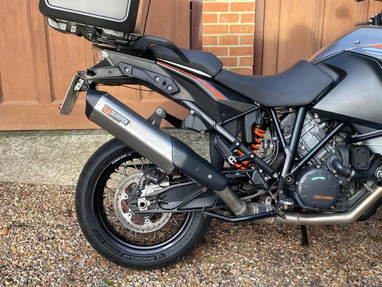 A lovley example of this highly capable Adventure bike with Service History and will be supplied with a new one year MOT. Extras include a Scorpion Exhaust, KTM Top Box and Rack, crash bars and a Centre Stand. These Bikes come extensively equipped as standard with KTM's MTC (multi-mode traction control), combined ABS (with off-road mode) and also four rider power modes (rain, street, sport and off-road) and with electronic suspension (EDS) with angle-sensitivity to the ABS and MTC. Supplied with spare key , Hand book and service book . A very nice bike in excellent condition