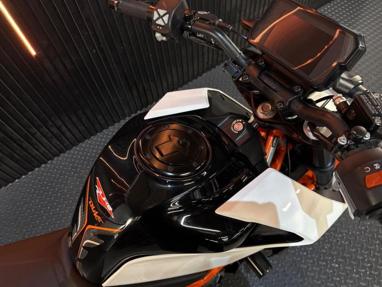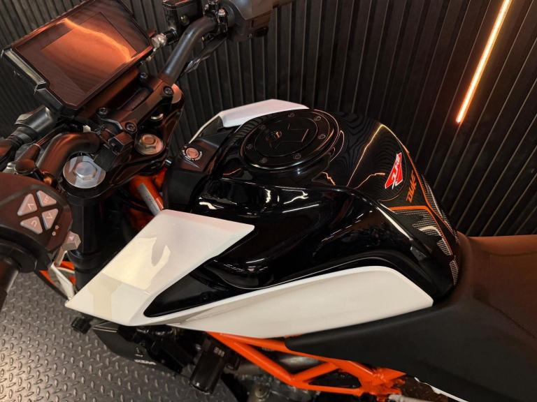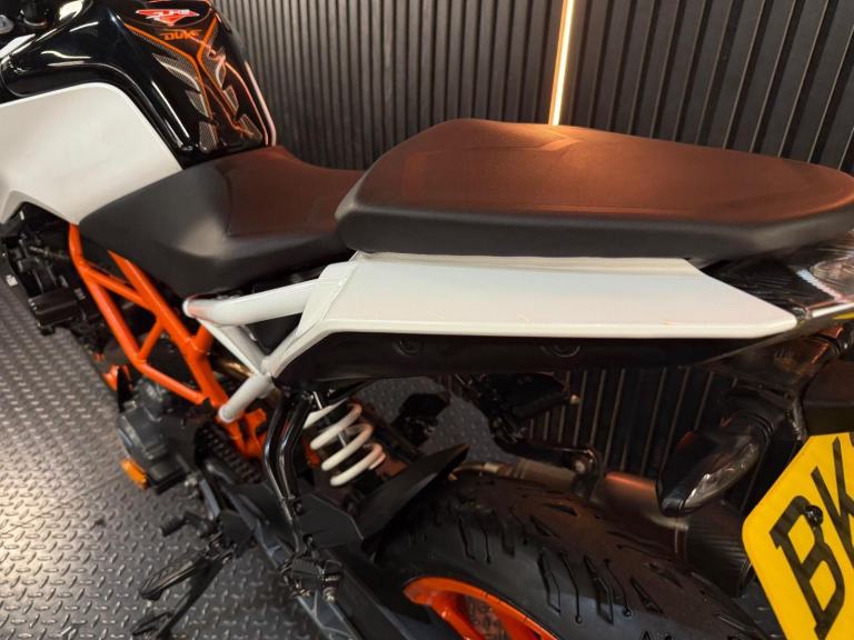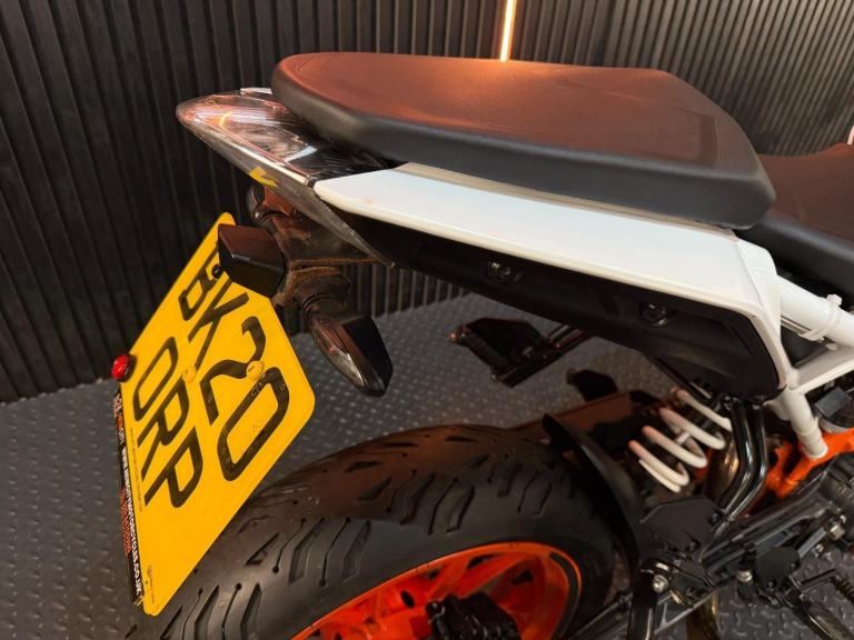 White, 24/7 ONLINE PURCHASE AVAILABLE - For sale is this fantastic 2020 KTM 390 Duke, finished in a striking white and orange. This highly popular naked bike has covered just 5,443 miles from new and is in excellent condition throughout. It comes tastefully upgraded with a sleek tail tidy to sharpen the rear profile and a high-quality aftermarket exhaust that gives the engine a much more aggressive character. The bike is supplied with both keys and has been fully prepared for the road with a fresh oil and filter service along with our comprehensive general inspection. The KTM 390 Duke is often cited as the king of the A2-licence category, offering a lightweight and ''scalpel-sharp'' riding experience. It is powered by a punchy 373cc single-cylinder engine that delivers rapid acceleration and a very high power-to-weight ratio. This 2020 model features high-end equipment usually reserved for larger bikes, including a full-colour TFT dash, LED lighting, and high-performance WP suspension. Its upright, commanding riding position and agile handling make it the definitive choice for the rider looking for a fun, stylish, and technologically advanced machine that excels in city traffic and on twisty backroads ***Rest assured, your new bike includes a 3-month warranty (extension options available) and is guaranteed to have at least 6 months remaining on the MOT. Making your purchase simple: Explore our flexible finance plans and benefit from our affordable nationwide delivery service. Important Note on Viewing: Stock moves quickly! If you are planning to view a particular model, we kindly ask that you call us first to confirm its availability and avoid any disappointment***, 5 owners, 2 keys, ABS, Electric start, Tail Tidy, Aftermarket Exhaust, Please visit our website to buy online, apply for finance or find out about our delivery prices.