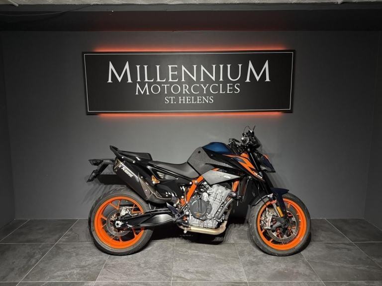 KTM 890 DUKE R with 4763 MILES. This bike is in fantastic condition and is fitted with loads of extras including AKRAPOVIC EXHAUST, RADIATOR GUARD, EXHAUST HANGER, AFTERMARKET MIRRORS and TRACK PACK. Choose Millennium Motorcycles for your next bike. Buy with confidence from the North West’s leading Multi-franchise dealership. Your new bike will be inspected by one of our trained technicians. Part Exchange Welcome, Finance available and Nationwide delivery. WhatsApp on [Phone number removed]or call 01744 616161. Reserve or buy online at [Website URL removed] Come pay us a visit with our amazing clothing and accessories department and on site café.