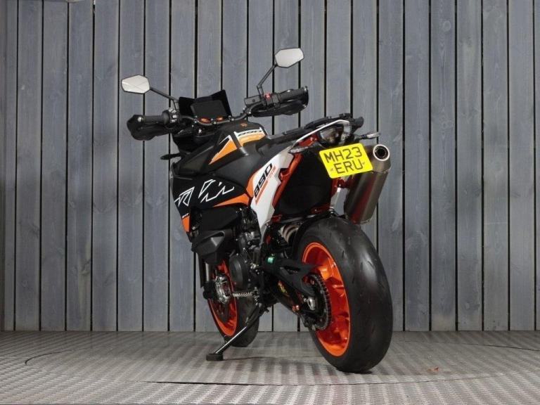 This 2023 ORANGE KTM 890 SMT motorbike has done 4000 miles and is in excellent condition. It's available for collection from our DONINGTON showroom or can be delivered anywhere on the UK Mainland. This bike has 3 previous owners, comes with 2 Keys, and a FULL SERVICE HISTORY.