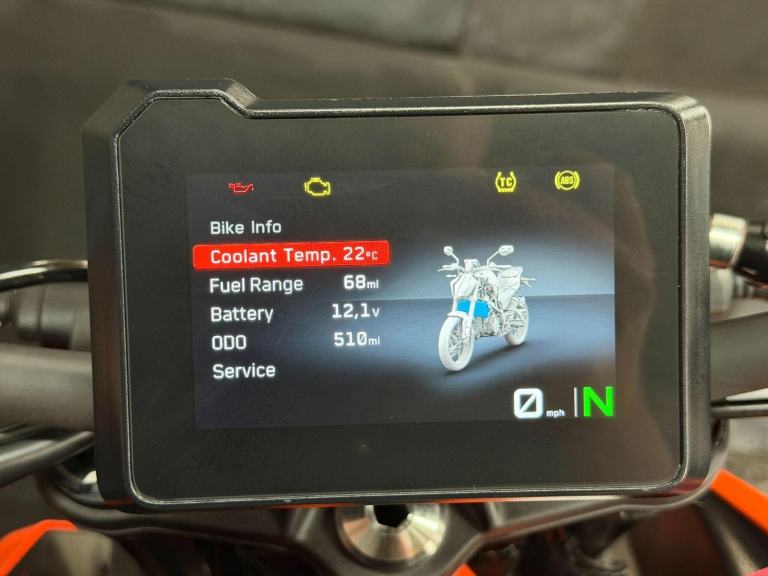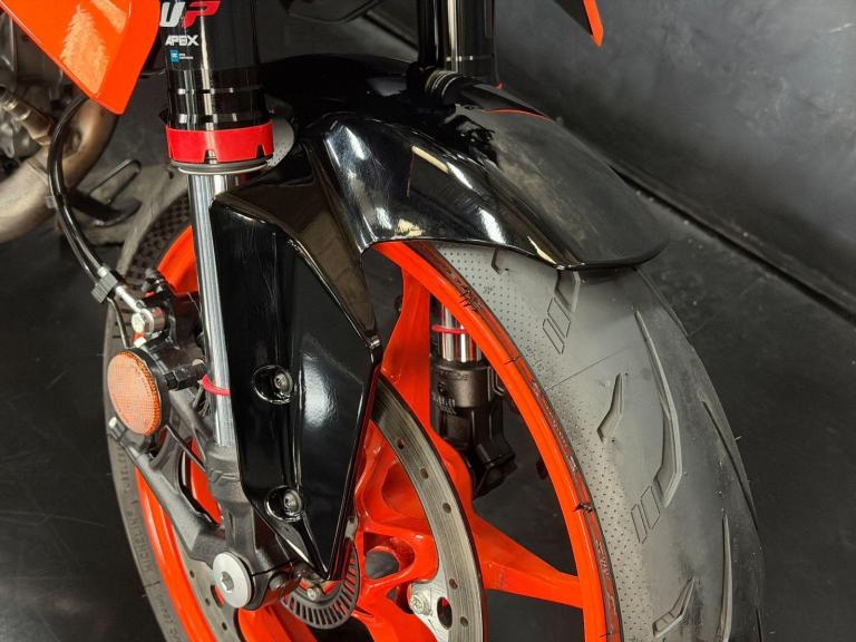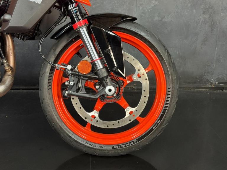 Orange, This is an absolutely pristine one owner bike, and is the latest generation of this super popular bike. This generation of Duke features a larger 399cc single cylinder engine with 45 BHP making it A2 compatible straight out of the box. They come with a 5 inch colour TFT display, adjustable riding modes, cornering ABS, adjustable WP APEX suspension all round, and even launch control. This particular bike is fit with some bar end mirrors, and will leave us with the first service carried out, so it's ready to be enjoyed., 0 owners, , For a personal walk-round high resolution video please give us a call.