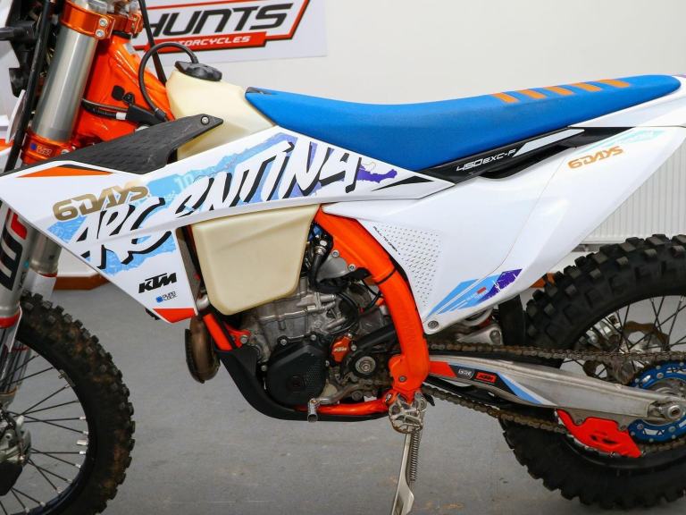 Orange, January 2025, '74 reg. KTM 450 EXC-F Six Days. ONLY 4,701 MILES from new. Fitted with Pro Carbon exhaust guard and under bar rear view mirrors otherwise a standard bike throughout. A lovely example of KTM's 'ready to race' enduro bike. Superb value at £8,495. PLUS : WE'LL DELIVER TO YOUR DOOR ANYWHERE IN MAINLAND UK FOR JUST £99! - Part-Ex and finance/PCP available, please ask for details. Call Hunts Motorcycles on 0161-432 1303. Please note: Some of our stock is stored off-site so please call us before setting off to view any of our pre-owned bikes., , (CONTACT US TODAY FOR HIGH RESOLUTION PICTURES & TO DISCUSS P/EX & FINANCE OPTIONS - 0161-432 1303)