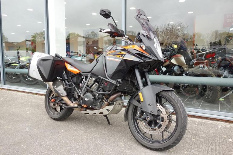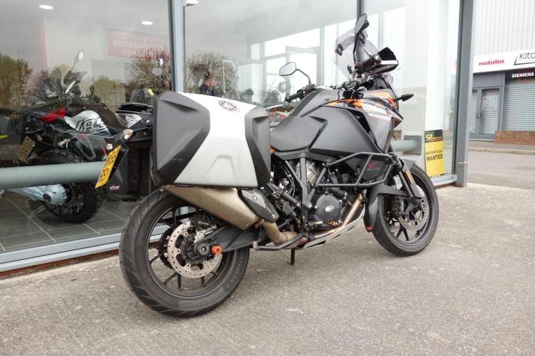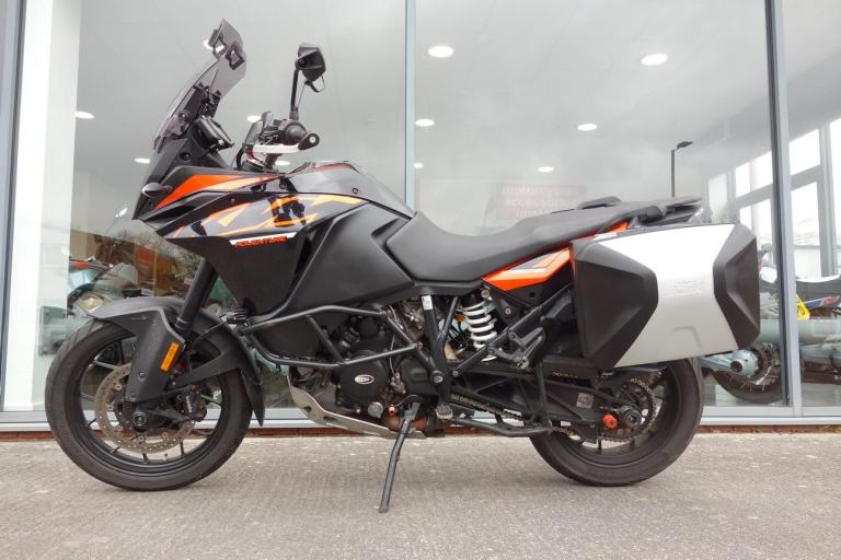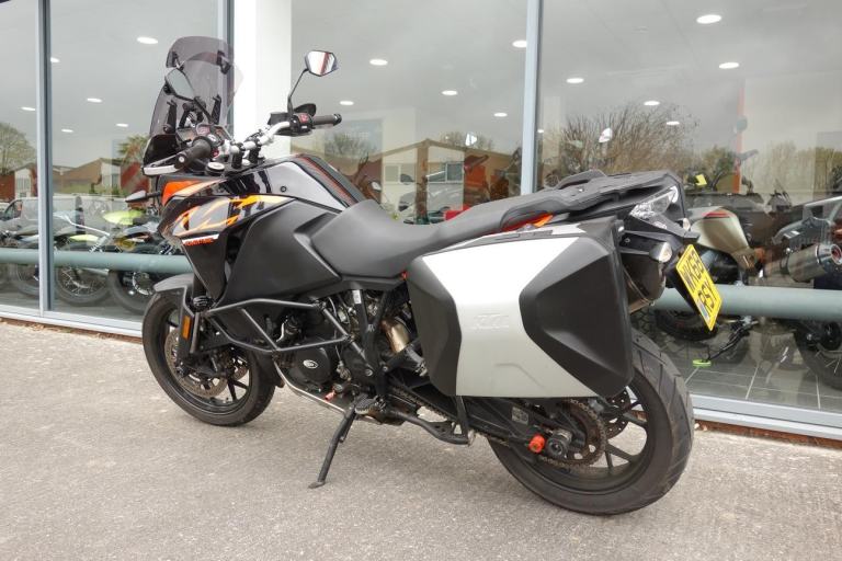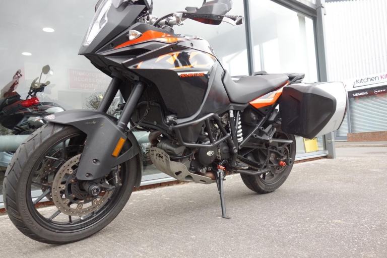 Just arrived and awaiting preparation with more pictures to follow, this popular 1090 Adventure has just one owner from new. 19198 miles recorded and with a full KTM service history. Enhanced with KTM panniers, Akrapovic can, R&G fork and swing arm protectors + radiator guard, crash bars, spotlights (white/yellow/strobe phases), Barkbuster hand guards, MRA screen, alloy sump guard, front extenda fenda and Veridian cruise control.