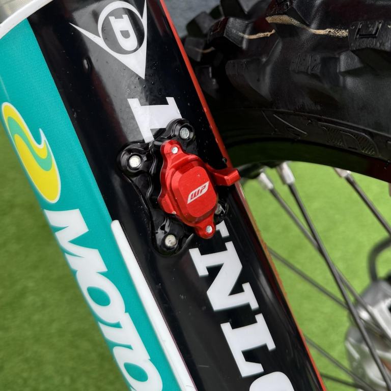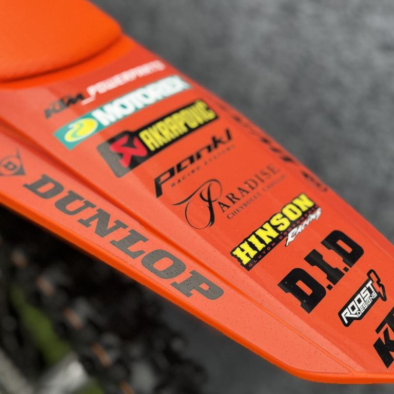 This is a Chase Sexton themed bike that we put together a while back. As well as the graphics it has some trick bits too that include, factory triple clamps, cnc reservoir covers, holeshot device and a Hinson Racing clutch cover.