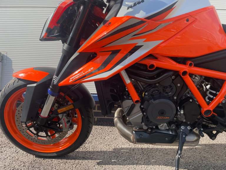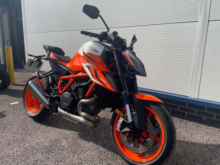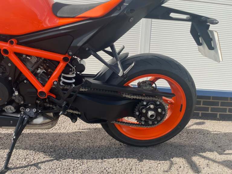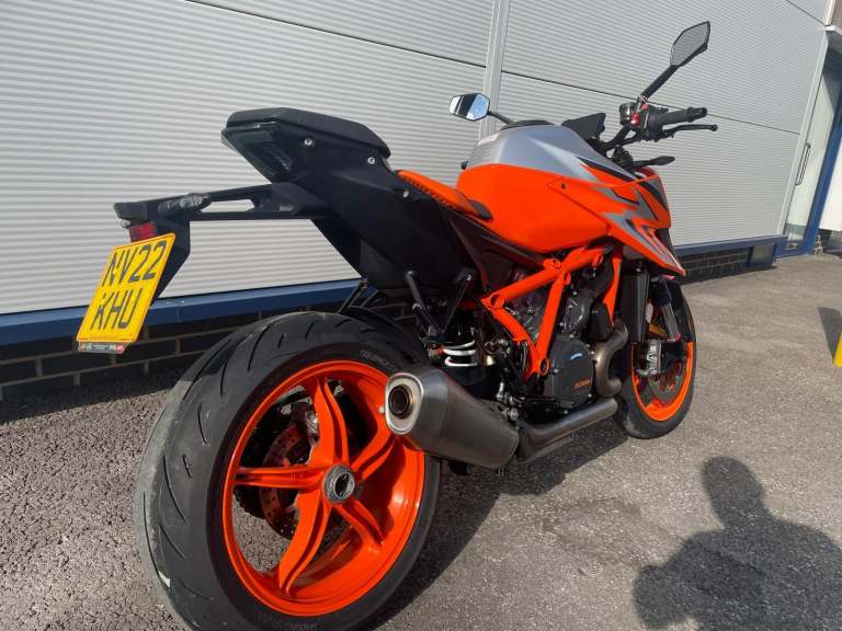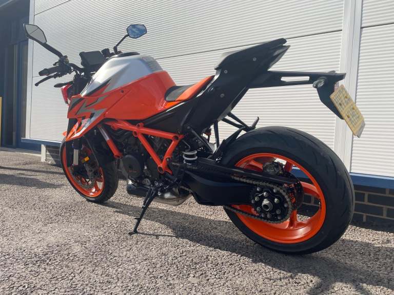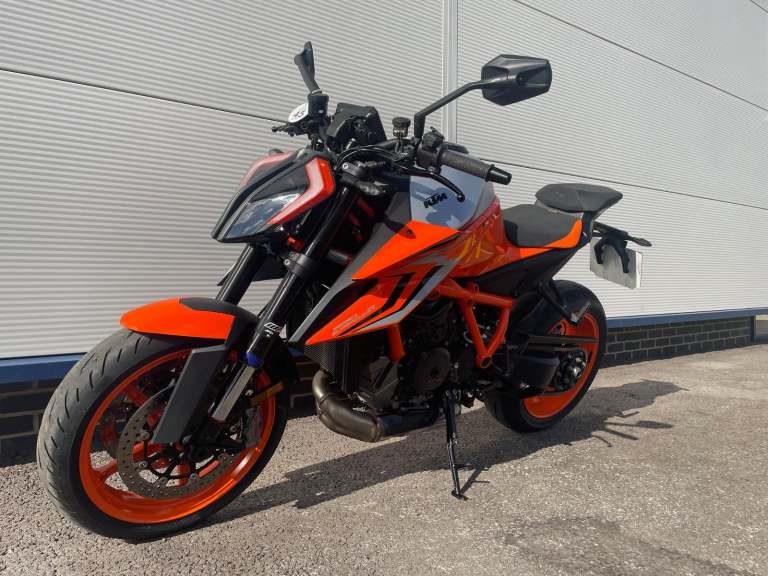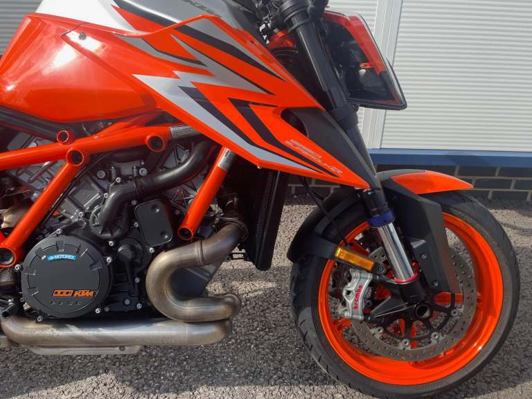 Stunning KTM 1290 Super Duke R Evo, This bike is a very good clean example, fitted with KTM Power parts ergo seat and 'Tech pack' has been unlocked. This one owner bike was origianlly supplied by us and we have done all the service work, 767 miles on 04/09/2022, and 4455 miles on 01/09/2023. we will supply the bike fully serviced with a 2 year/5000 mile warranty!