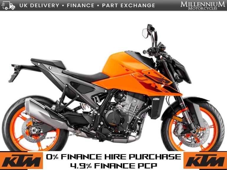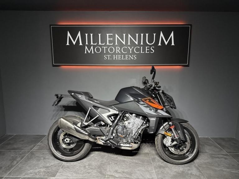 KTM DUKE 990. Hitting every target with devastating accuracy, the all-new KTM 990 DUKE brings unmatched levels of precision to the street. Packing 123 HP and 103 Nm into an all-new frame, with adjustable WP APEX suspension and highly tuned electronics to boot, this - put simply - is the lightest, sharpest, most performance focused mid-class NAKED motorcycle to ever wear the DUKE nameplate. Precision and setup go hand in hand. In this case, 5 click adjustability on both the WP APEX 43 mm front forks and WP APEX rear shock. The 990 DUKE is the lightest, most performance based mid class naked, providing unmatched rider feedback, performance and comfort. the 990 DUKE both looks and is aggressive. Choose Millennium Motorcycles for your next bike. Buy with confidence from the North West’s leading Multi-franchise dealership. Your new bike will be inspected by one of our trained technicians. Part Exchange Welcome, Finance available and Nationwide delivery. WhatsApp on [Phone number removed]or call 01744 616161. Reserve or buy online at [Website URL removed] Come pay us a visit with our amazing clothing and accessories department and on site café.