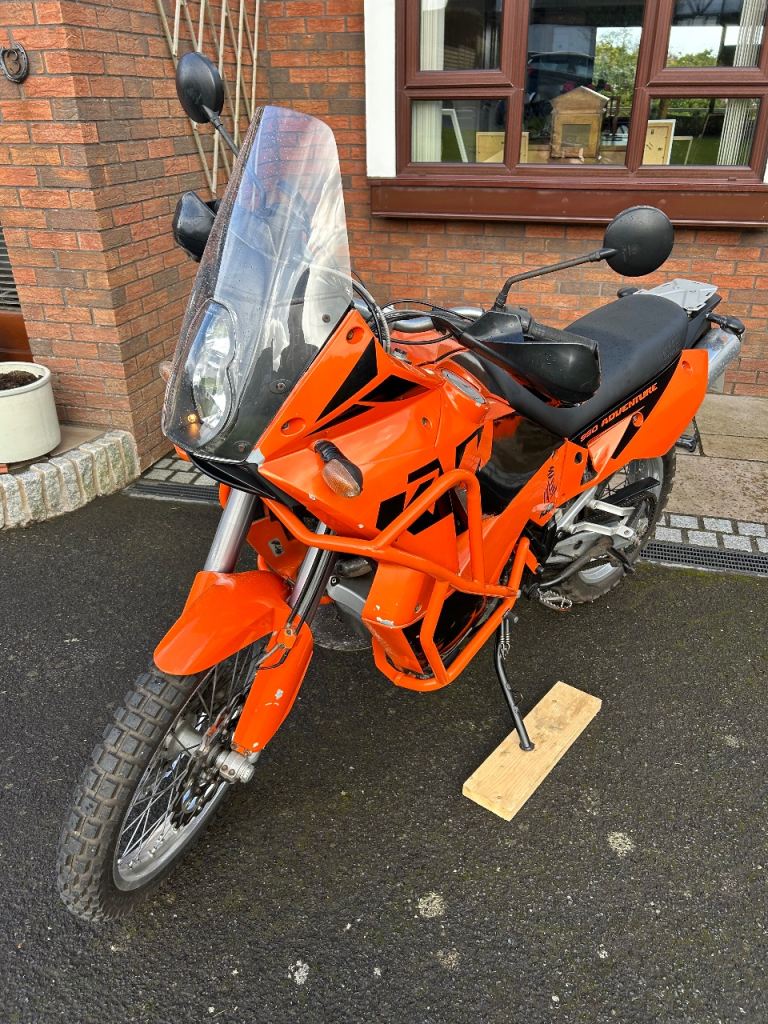 2004 KTM Adventure for sale. 44k miles and mot’d to Nov 26. New Heed crash bars fitted, Oxford heated grips and Scottoiler fitted. Selling with 2 sets of tyres - Motoz Tracinator Adventures and Contitrail Attack 3’s for the road. Also new KTM handbook, spare seat and set of older crash bars. fun bike to ride but I need more space in my garage!