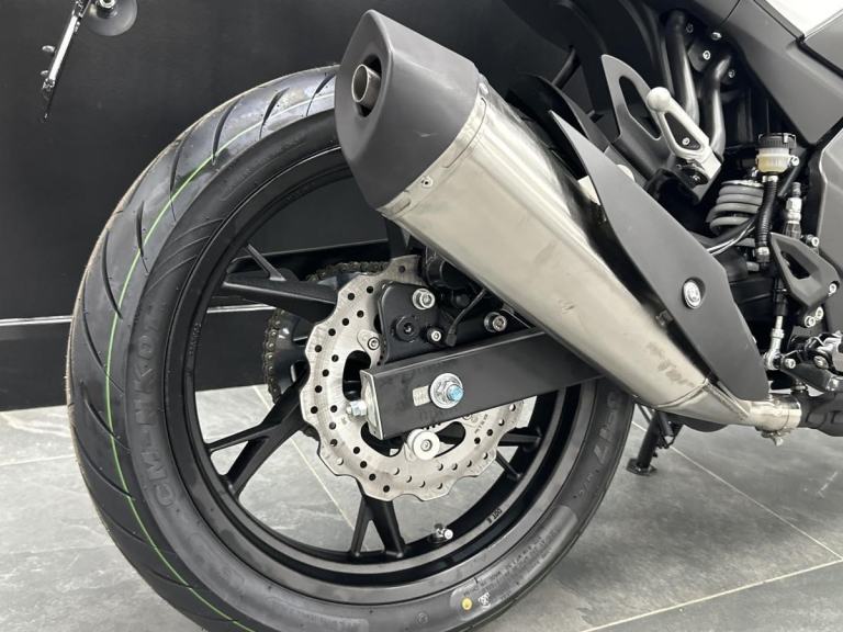 For a smooth and comfortable ride, the motorcycle boasts a telescopic upside-down front suspension and a telescopic coil spring oil-damped rear suspension. Its lightweight 17' alloy wheels complement the agile nature of the bike, fitted with 100/80-17 front and 130/70-17 rear tyres provide an excellent grip, making your city commute or countryside adventure more thrilling and secure.