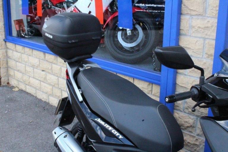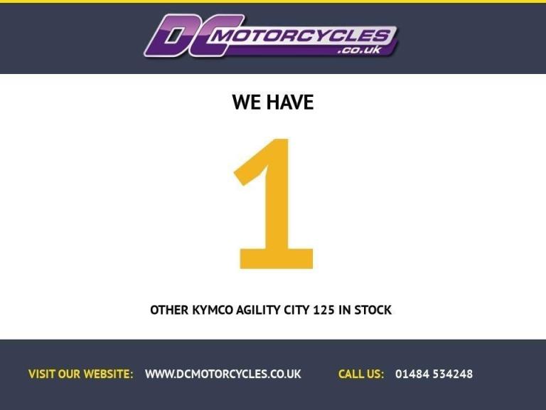 KYMCO's highly popular Agility 125cc scooter 'City' commuter range with only 3000 miles from new to include the top box fitted.. With fresh new aesthetics and a higher technical specification than its predecessors, the all new City has been designed for riders of all ages who want a smart modern, environmentally-friendly 125cc scooter for work, college or leisure. For rider safety, KYMCO has given the City a new 14" rear wheel and a longer suspension for increased stability when navigating busy potholed roads. The addition of a new combined braking system also makes for a safer ride by linking the front and rear disc brakes, the braking experience is more progressive and well-balanced. A nice new practical feature is the fuel cap being positioned on the front of the City Plus to make refuelling the 7 litre capacity tank even easier. There is also a useful 12 Volt accessory outlet for charging mobile devices with lockable under seat storage. Learner legal, ride from 17 year old. *** Established in 1980, DC Motorcycles is one of the longest established motorcycle showrooms in the Huddersfield area. In stock are many New and Used bikes, we offer low rate finance with MotoNovo and Close Brothers, so finance can be arranged - settled on your behalf. We also offer finance for customers with poor credit history's. We have full workshop facilities available. There is a full stock of clothing, protective equipment and many accessories on our top floor. You can use our Contact US section or call - email via 01484 534 248 - [Phone number removed]- [Email address removed. Click Email button to contact us.]. We will generally be on site between 09:30 - 17.00 daily apart from Wednesday's and Sunday's however, appointments can be arranged outside these hours.