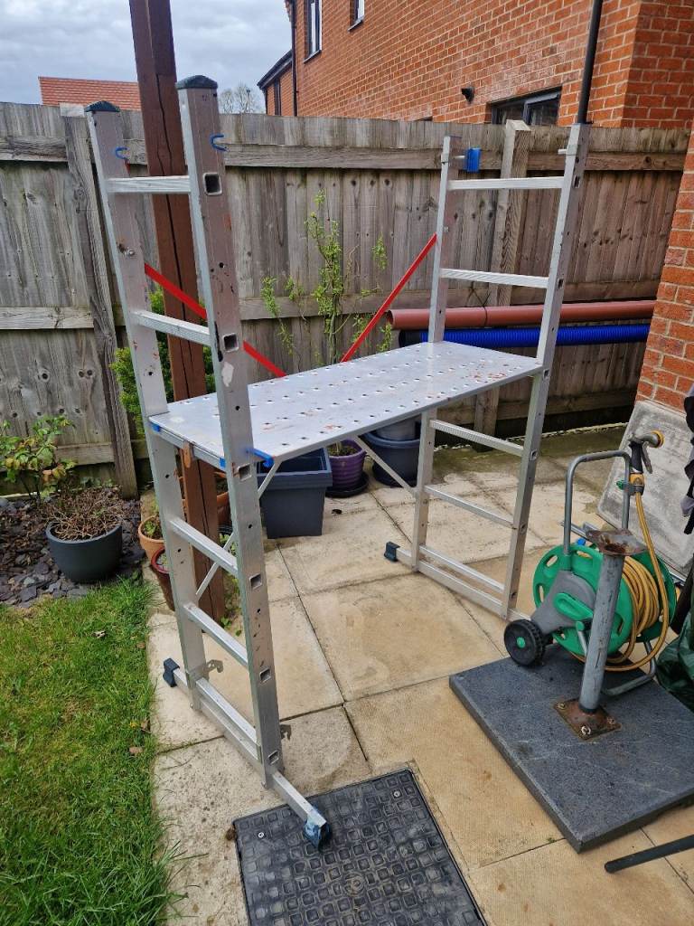 Aluminium combination ladder with platform. Personal collection Winsford