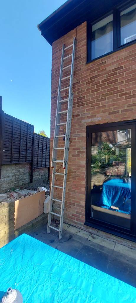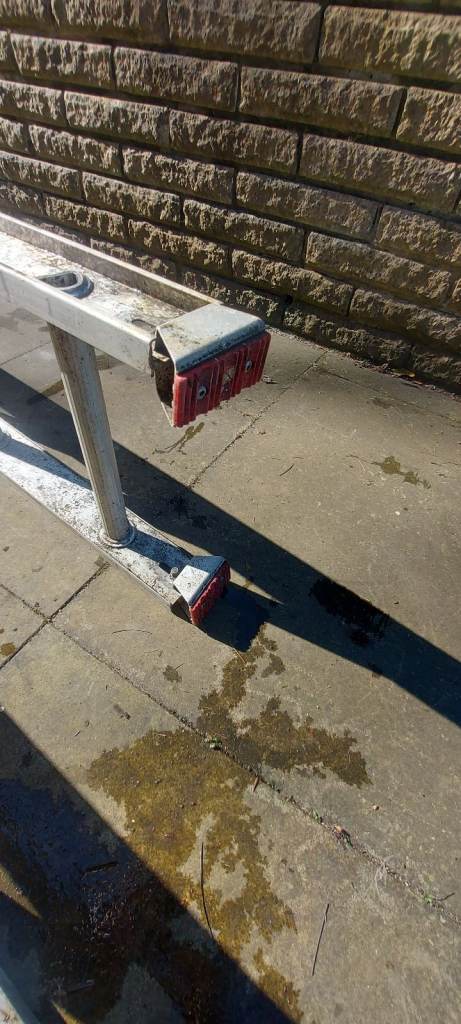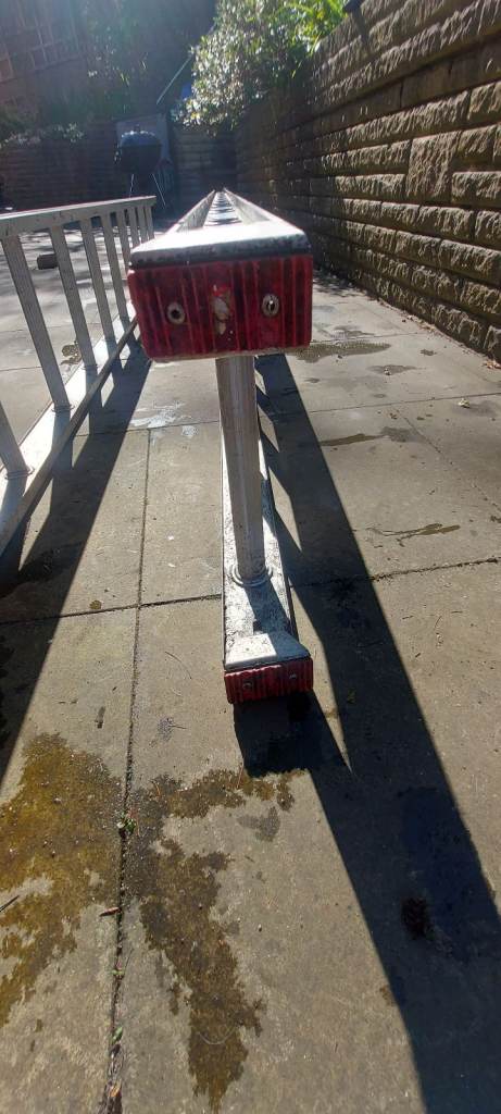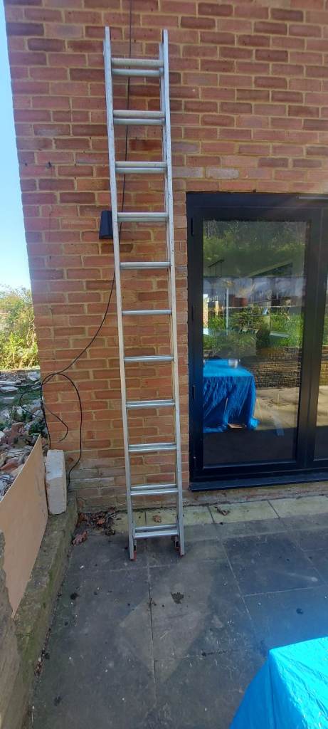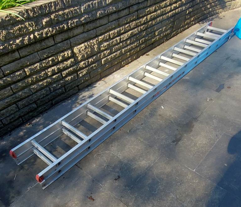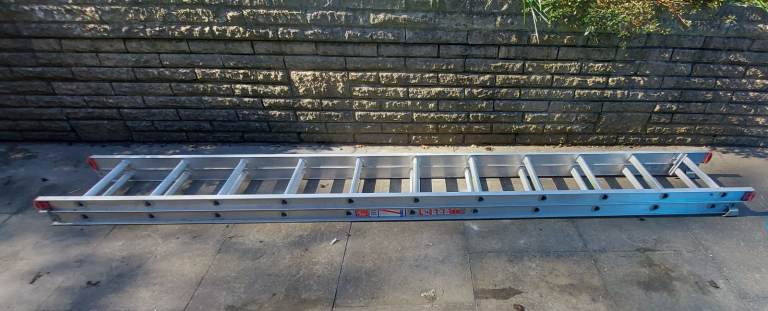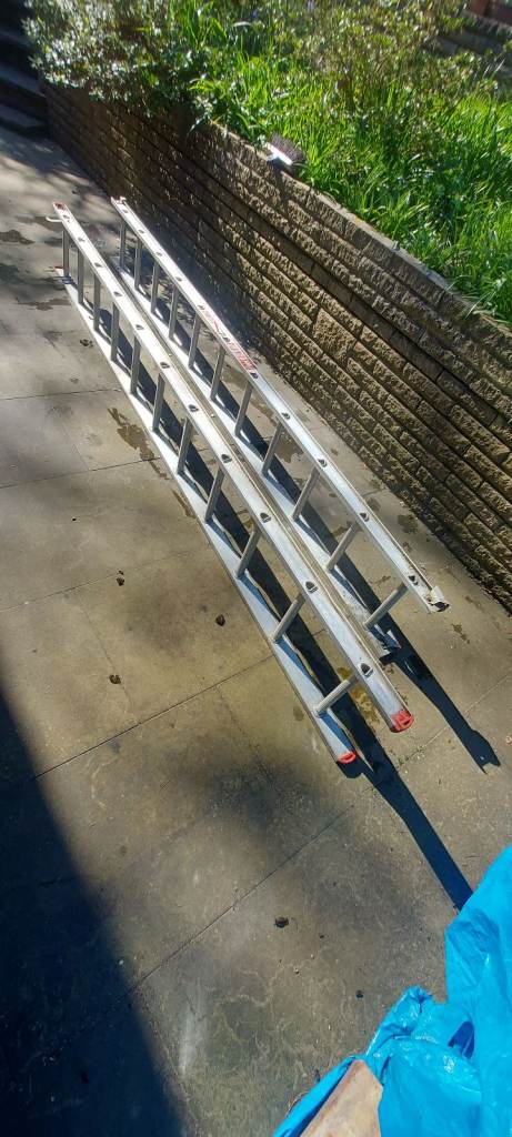 Outdoor ladders. Moveable to a great height. Height shown on label in photo. Got footpads. All in good working order. Large vehicle needed to transport.