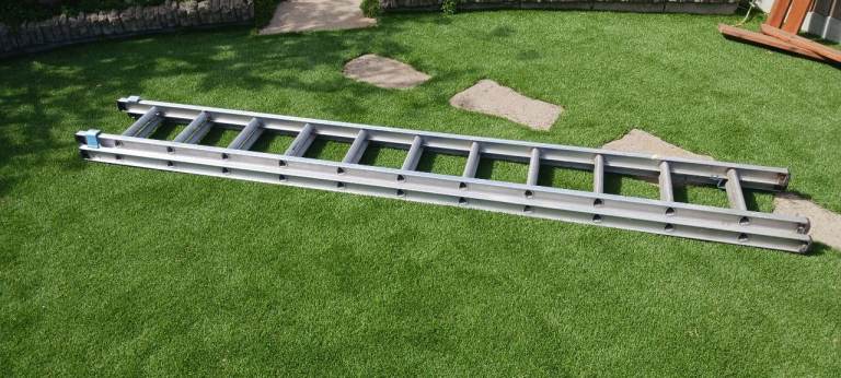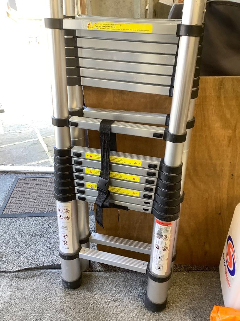Extendable ladder ABRU Werner. Folded measurements - height 6 ft width 15 inches, depth 6 inches, approx. (183cm X 38cm X 15cm). Extends higher to reach stairwell/landing for decorating or can be used as a stepladder. For collection only. Not able to deliver.
