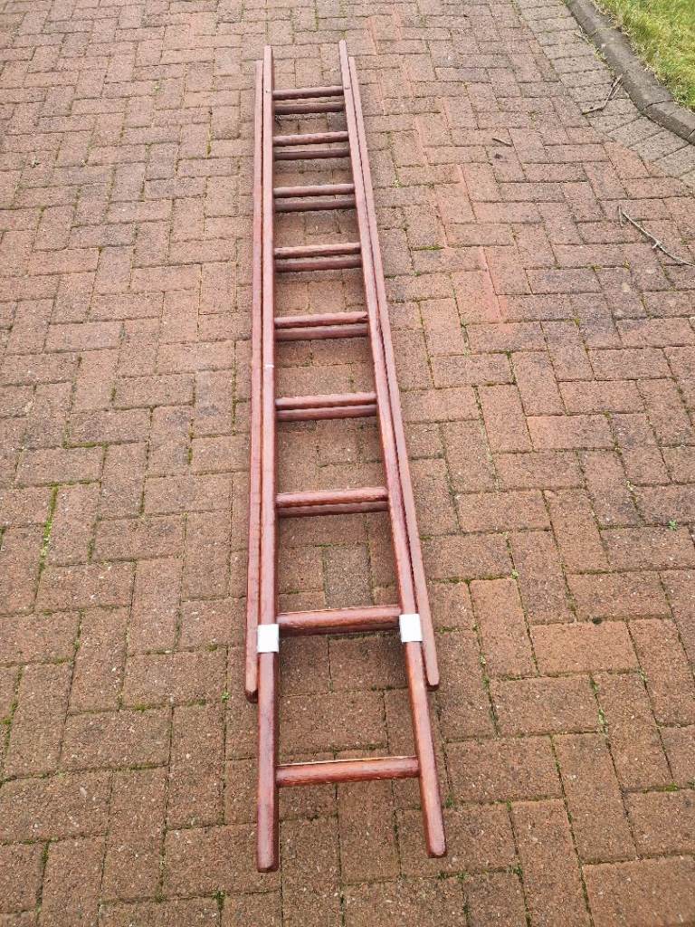 Excellent condition, 2 pc extending ladder, (2.1m & 2.4m) extended height 3.7m. Sturdy, solid with wire support beneath each rung. Ideal for jobs around home and garden