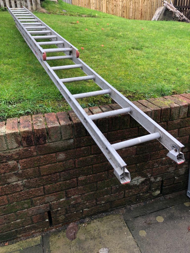 Extension ladder 3.5 metres/11 feet 6 inches closed, 6.3 metres/20 feet 7 inches extended (approx)
