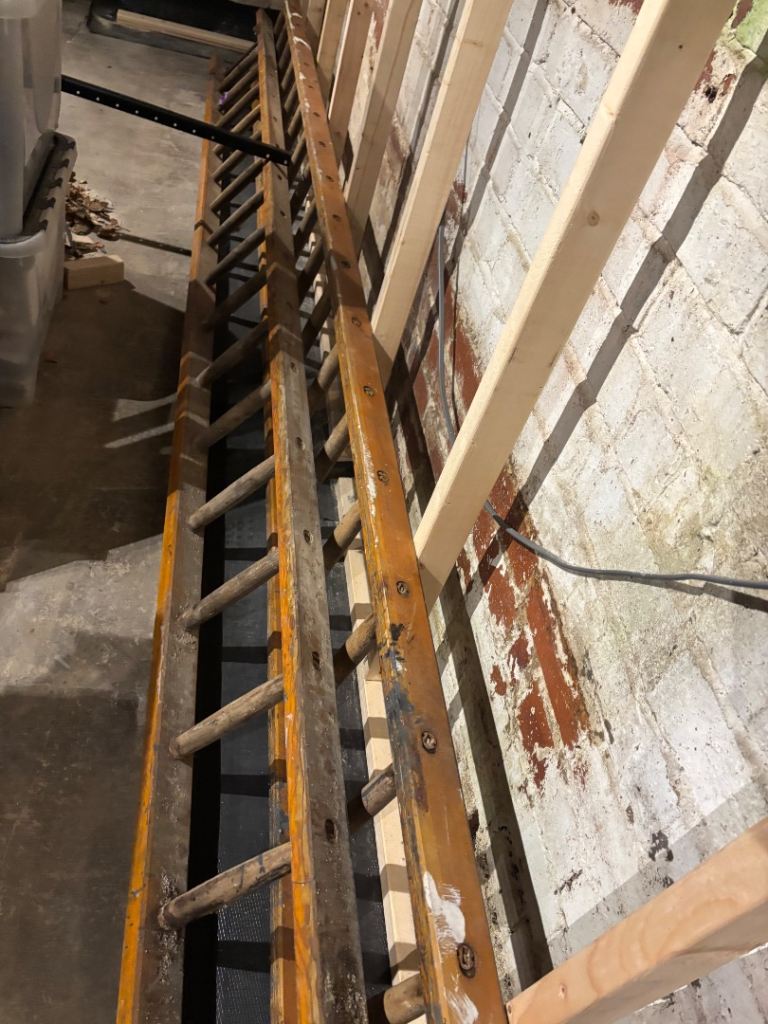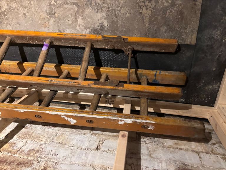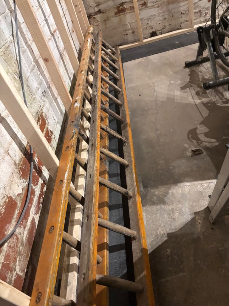 Wooden ladders x2. Connecting. Circa 5m long / 22 steps. Sturdy.