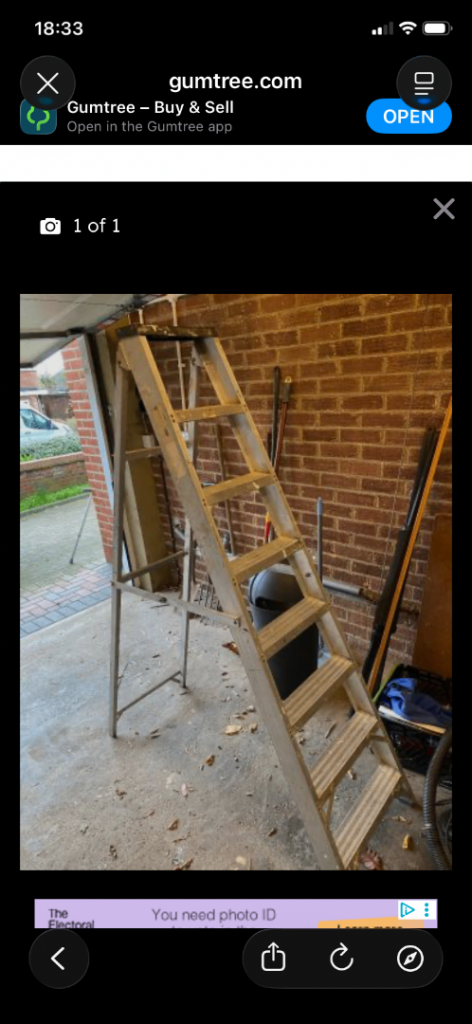 Two tread step ladder used twice, steel frame,as new condition from a smoke free home collection from sawston