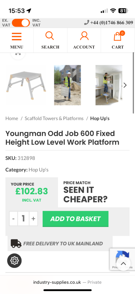 Youngman Odd Job 600 Fixed Height Low Level Work Platform
