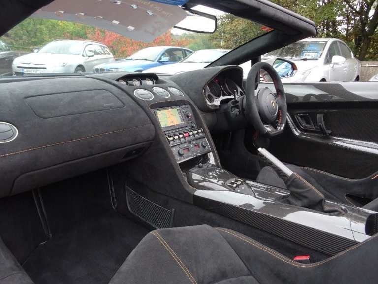 With its extensive use of carbon fibre both in and out, the LP570-4 Performante also gains an ECU tweak to boost output by 10 BHP. Put the 65kg weight loss and uprated ECU together, and you have the pinnacle of the Gallardo lineup. Full dealership history, Black Full suede interior, Four wheel-drive, Pearlescent Arancio Borealis, Carbon Fibre Pack Inside + Out, Orange Callipers, Carbon Ceramic Brakes, Reverse Camera, SAT/NAV, Blue Tooth, Tracker, 2 Previous Keepers, Full Lamborghini Service History