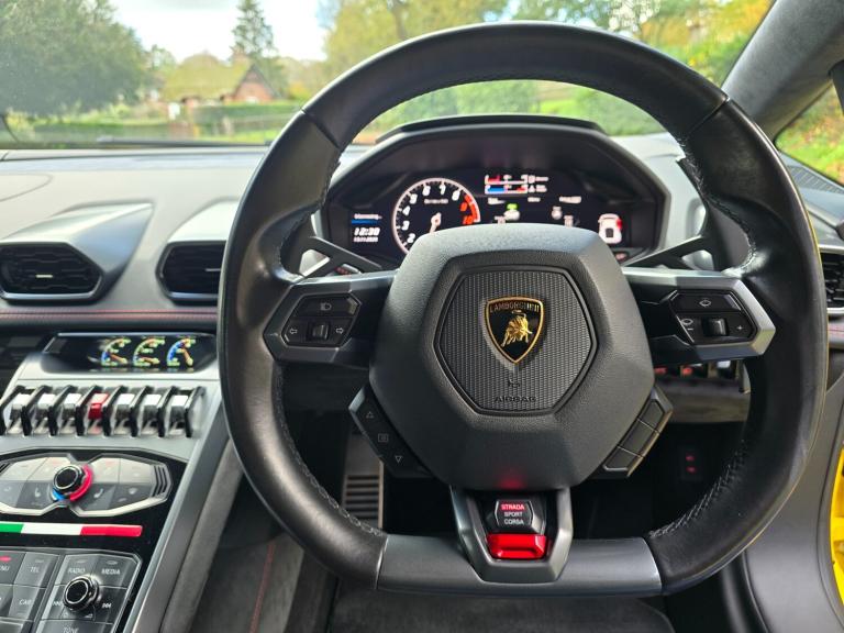 LAMBORGHINI HURACAN LP 610-4 V10 2014 PRIVATE PLATE CURRENTLY V10 FUG 30.600 MILES FULL LAMBORGHINI SERVICE HISTORY PLUS SPECIALIST ON THE LAST SERVICE WITH FULL HEALTH CHECK AND INVOICE SUSPENSION FRONT LIFT CARBON CERAMIC BRAKES WRAPPED IN A OUTSTANDING YELLOW FULL DOOR SHUTS AND FRONT BOOT AND BONNET WHITE UNDERNEATH AND HAVE PICTURES BEFORE CAR WAS WRAPPED 4 MONTHS AGO. CARBON FIBRE REAR SPOILERGLOSS BLACK WHEELS YELLOW BRAKE CALIPERS ALCANTARA AND LEATHER SEATS HEATED SEATS REVERSE CAMERA PARKING SENSORS 2 KEYS TRACKER FITTED THIS IS A OUTSTANDING EXAMPLE AND NEEDS TO BE SEEN TO APPRECIATE HOW NICE IT IS.. PART EXCHANGE WELCOME FINANCE OPTIONS AVAILABLE VISIT OUR INSTAGRAM FOR VIDEOS AND PICTURES. VG PERFORMANCE CARS LTD