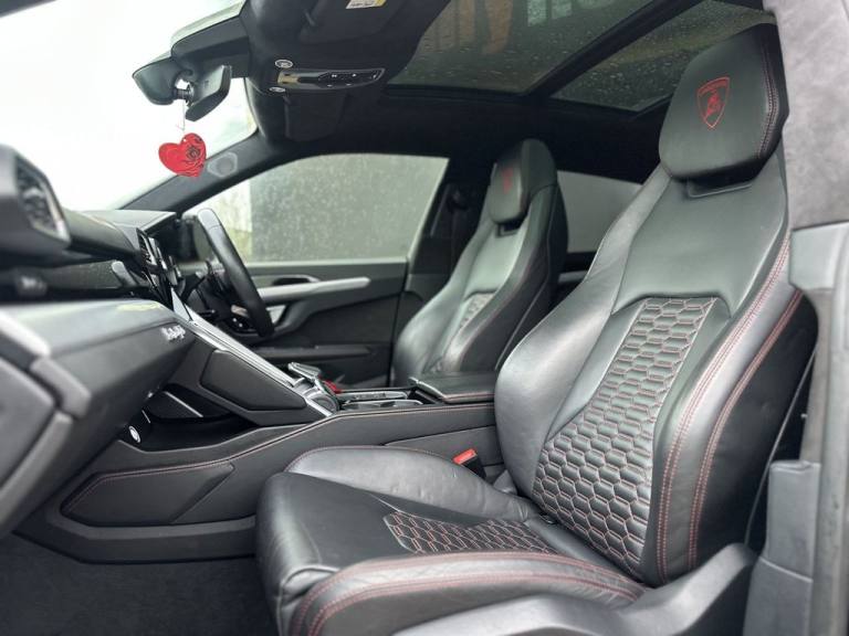 .21in Alloy Wheels - Alcione Silver Rims, 23in Alloy Wheels - Taigete Shiny Black Rims, ABS - Anti-lock Braking System, Airbag - Driver, Airbag - Passenger, Airbag - Side, Ambient Light Package, Anti-Theft Alarm, ASR - Anti Slip Regulation, Auto Headlights and Rain Wipers, Automatic Dual-Zone Air Conditioning System with Integrated Active Carbon Filter, Bang and Olufsen Advanced 3D Audio System, Black Matte Exhaust Tailpipes, Bluetooth, Carbon Ceramic Brakes with Red Painted Brake Calipers, Carbon Ceramic Brakes with Silver Painted Brake Calipers, Colour Touch Screen, Comfort Package, Cup Holder, DAB and Pay TV, DAB Radio, Daytime Running Lights - LED, Door Mirrors - Electrically Adjustable-Heated and Folding, EBD - Electronic Brake Distribution, Electric Front and Rear Windows, Electric Panorama Roof, Electromechanical Power Steering, Electronic Traction Control, Embroidered Logo on Headrest, Emergency Kit, ESC - Electronic Stability Control, Front and Rear Seats Heated, Full Electric Front Seats with Ventilation and Massage, Head Up Display - HUD, Headlights - LED, Headliner Alcantara, Heat Reflective Windscreen, HiFi Base, Highway Assistant Package, Lamborghini Smartphone Interface - Apple Carplay and Android Auto, Lamborghini Warranty 4th Year, Lower Exterior Carbon Pack, Multi Function Steering Wheel in Coloured Leather, Multifunction Steering Wheel in Smooth Leather, Navigation System, Nero Helene, Optional Stitching, Parking Assistant Package with Remote Park Assist, Rear Spoiler in High Gloss Black, Remote Central Locking, Style Package - Body Colour, Upper Exterior Carbon Pack, Urban Road Assistant Package, Wheel Arches in Carbon Fibre - Matt- Ad Personam