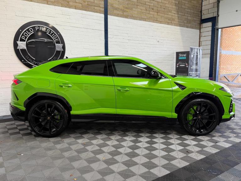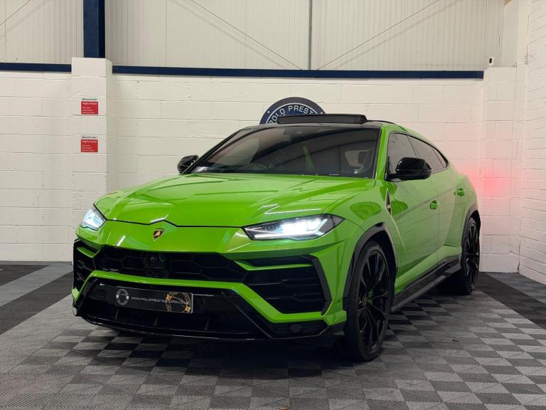 This 2022 Lamborghini Urus V8 BiTurbo Pearl Capsule is a remarkable example of Italian automotive engineering. Finished in the striking Pearl Capsule trim, this four wheel drive SUV boasts a powerful 4.0 litre petrol engine, meeting Euro 6 emission standards. Inside, you will find a luxurious Bang and Olufsen Advanced 3D Audio System, an electric panorama roof with an opening sunroof, and heated rear seats for enhanced comfort. The striking green painted brake calipers on the carbon ceramic brakes add a distinctive visual touch, complemented by an ambient light package that creates a sophisticated atmosphere. The Urus offers an exceptional driving experience, highlighted by its impressive acceleration of 0-62mph in just 3.6 seconds, demonstrating its superior performance compared to other vehicles in its class. Furthermore, this model provides generous boot space, making it a practical choice for both everyday use and longer journeys. Features Include: , bang and olufsen advanced 3d audio system, 23in alloy wheels - taigete shiny black rims, electric panorama roof, privacy glass - acoustic and double glazing, ambient light package, pearl capsule alcantara - leather - verde mantis, rear seats heated, carbon ceramic brakes with green painted brake calipers, offroad modes, 23in alloy wheels - taigete shiny black with body colour accent, 4th year maintenance package, abs - anti-lock braking system, asr - anti slip regulation, airbag - driver, airbag - passenger, airbag - side, anti-theft alarm, auto headlights and rain wipers, automatic dual-zone air conditioning system with integrated active carbon filter, bluetooth, carbon ceramic brakes with black painted brake calipers, colour touch screen, cup holder, dab radio, daytime running lights - led, door mirrors - electrically adjustable-heated and folding, ebd - electronic brake distribution, esc - electronic stability control, electric front and rear windows, electromechanical power steering, electronic traction control, head up display - hud, headlights - led, headliner alcantara, hifi base, highway assistant package, lamborghini smartphone interface - apple carplay and android auto, lamborghini warranty 4th year, multifunction steering wheel in smooth leather, navigation system, pearl capsule exterior package, pearl capsule interior package, remote central locking, urban road assistant package
