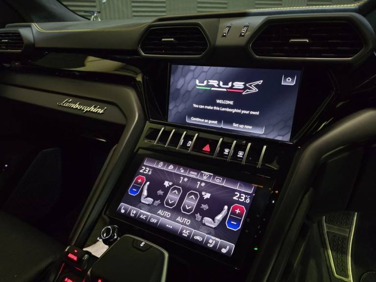 2023 / 23 Lamborghini Urus "S" 4.0 Turbo Finished in Grigio Keres Metallic, with Black Q Contrast Stitching in Yellow. 30000 Miles FLSH (Just Serviced) Lamborghini Warranty Until April 2027. VAT QUALIFYING !! One Owner From New. Spec Includes : 23" Taigate Gloss Black Alloys, Yellow Calipers, Sliding Panoramic Sunroof, B&O Advanced 3D Sound, Lamborghini Anima with Off Road Modes, Soft Close Doors, High Gloss Style Package, Matt Black Tailpipes, Front and Rear Heated Seats, Heated Steering Wheel, Head Up Display, Park Assistant Pack with Remote Park, Ventilated and Massage Seats, Premium Air System with Ioniser. Bespoke Finance and Part Exchange Available..VAT Qualifying !!, 23" Alloys, Sliding Panoramic Sunroof, B&O Advanced 3D Sound, Soft close doors, Embroidered Logo on Headrest, Electric Panorama Roof, Soft Close, Offroad Modes, Wet-Arm Wiper - Headlight Washer and RVC Cleaner, Grigio Keres, Vehicle Tracking System - VTS, Parking Assistant Package with Remote Park Assist, Q-Citura Interior on Leather, Premium Air Quality System with Air Ioniser and Aromatisation, Full Electric Front Seats with Ventilation and Massage, Front and Rear Seats Heated, Coloured Carpets and Floor Mats - Match to Basic Colour, Style Package - Shiny Black, Privacy Glass - Acoustic and Double Glazing, Acoustic and Heat Insulated Glass, Black Matte Exhaust Tailpipes, 23in Alloy Wheels - Taigete Shiny Black Rims, 21in Alloy Wheels - Alcione Silver Rims, ABS - Anti-lock Braking System, ASR - Anti Slip Regulation, Airbag - Driver, Airbag - Passenger, Airbag - Side, Anti-Theft Alarm, Auto Headlights and Rain Wipers, Automatic Dual-Zone Air Conditioning System with Integrated Active Carbon Filter, Bluetooth, Carbon Ceramic Brakes with Silver Painted Brake Calipers, Colour Touch Screen, Cup Holder, DAB Radio, Daytime Running Lights - LED, Door Mirrors - Electrically Adjustable-Heated and Folding, EBD - Electronic Brake Distribution, ESC - Electronic Stability Control, Electric Front and Rear Windows, Electromechanical Power Steering, Electronic Traction Control, Head Up Display - HUD, Headlights - LED, Headliner Alcantara, HiFi Base, Highway Assistant Package, Lamborghini Smartphone Interface - Apple Carplay and Android Auto, Lamborghini Warranty 4th Year, Multifunction Steering Wheel in Smooth Leather, Navigation System, Remote Central Locking, Urban Road Assistant Package