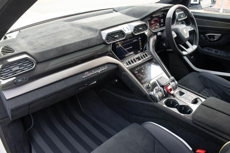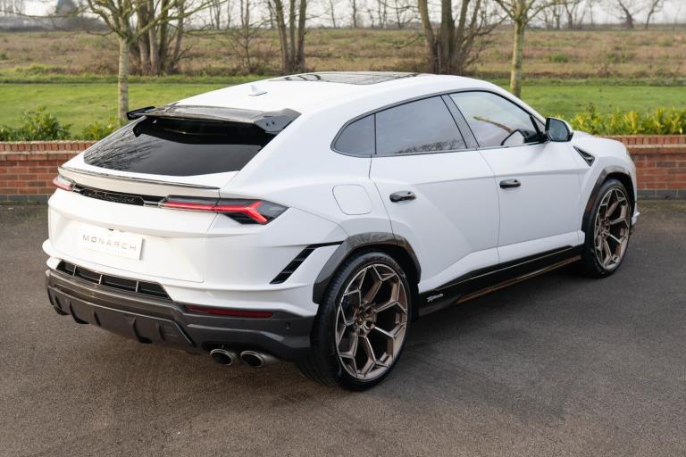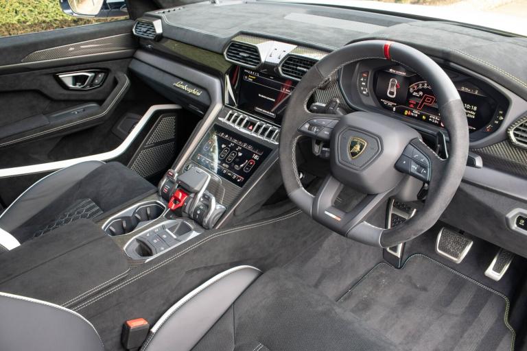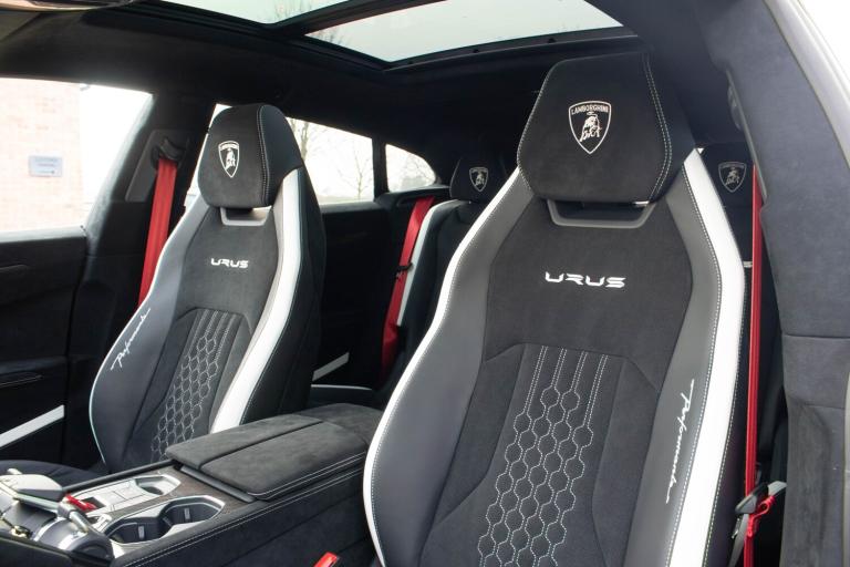 We're proud to offer for sale this 2025 Lamborghini Urus Performante finished in Bianco Icarus with Nero Ade Alcantara. This one owner from new example benefits from a full coverage of Paint Protection Film, Xpel Satin applied to the Bianco Icarus bodywork and Xpel Gloss applied to the Gloss Black and Carbon elements of the car. Our car also benefits from the Lamborghini Official 5 year warranty and maintenance package which expires on the 17th July 2030.£259,890 including VATBianco Icarus (Satin PPF)23-inch Titanium Pelope wheelsBlack brake calipers (Carbon ceramic brakes)Nero Ade Alcantara interiorBicolour Sportivo Alcantara + Performante interiorBang & Olufsen Advanced 3D audio systemFull ADAS PackagePanoramic sunroofMassage front seatsHeated/cooled front seatsHeated rear seatsHeated reflective windscreenAkrapovic exhaustFull carbon interior packageCarbon fibre front splitter & diffuser Carbon fibre wheel archesCarbon fibre bonnet ventsPremium Air Quality systemSports steering wheel in AlcantaraNight VisionAmbient lighting packageFloor mats with leather piping & double stitchingRear Lamborghini logo in high gloss finishWiper blades with integrated nozzlesGarage door openerUpgraded stitching for interior + steering wheelSeat belts in Rosso (Red)Vehicle Tracking System5 Year Lamborghini Warranty Pack5 Year Lamborghini Maintenance PackPrivacy glass