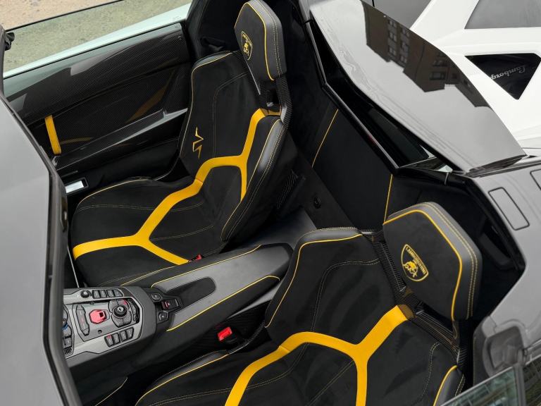 Stunning LP 750-4 SV Roadster. Finished In Bianco Isis With Giallo SV Interior. Fantastic Spec Inc: Sports Exhaust, Branding Package With Alcantara, Small SV Logo, Multi Function Steering Wheel In Full Alcantara, Magneto-Rheological Suspension and Lifting System, Red Rear Springs, Fixed Rear Air Intake In Visible Carbon Fibre, Removable Hardtop In High Gloss, Rear View Camera, 20/21" Diantus Forged Alloys In Black, Yellow Brake Calipers, DAB Radio, Sat/Nav. This SV Roadster Comes With Service History. VAT QUALIFYING.