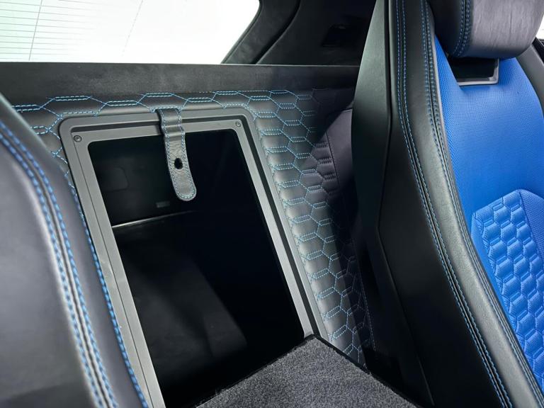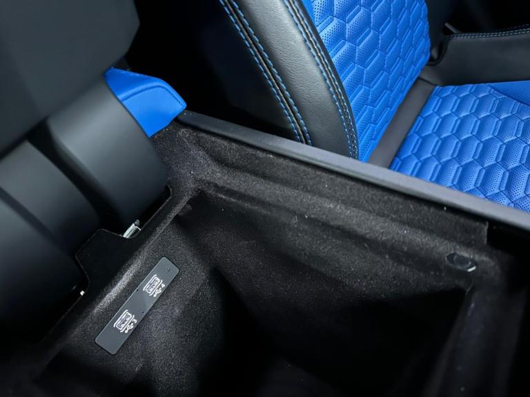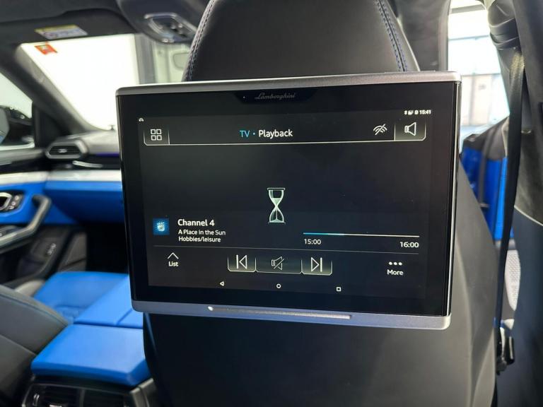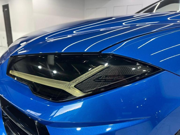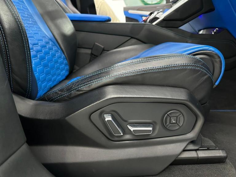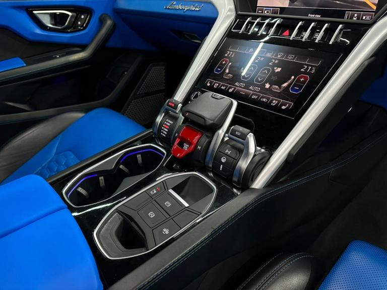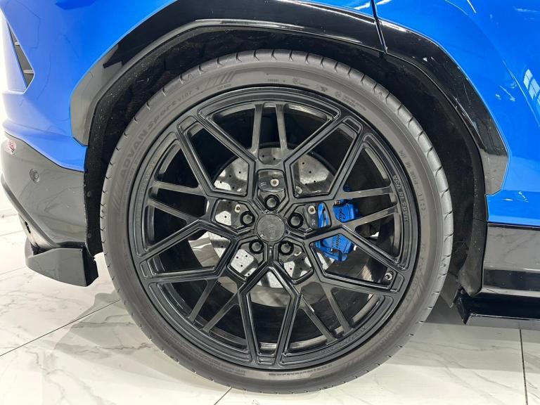 Finished in the stunning Nethuns Metallic Blue, this Lamborghini Urus has covered 84,100 miles and is powered by a 4.0-litre V8 producing 640bhp, paired with an 8-speed automatic transmission. Performance is substantial, with 060mph in 3.5 seconds and a top speed of 190mph, delivering supercar-level pace in a practical SUV format. Exterior -Gloss black styling kit -Gloss black front splitter, side skirts and rear diffuser -Gloss black spoiler lip extensions -23"" gloss black Urban alloy wheels -Blue Lamborghini brake calipers with carbon ceramic disc brakes -Smoked headlights and rear lights -Roof rail bars Interior The interior is finished with a bespoke blue specification, featuring contrast stitching throughout the cabin, steering wheel and seats. Additional highlights include: -Optional 4-seat configuration -Rear touch screens -Fully electric and heated seats -Rear centre console with Lamborghini rear touchscreens -Dual front touchscreens with haptic feedback -Bang & Olufsen sound system -Switchable driver modes and adjustable suspension -Cruise control -Disc drive CD player -Automatic headlights -Alcantara roof lining -Panoramic roof -Ghost immobiliser fitted A well-specified Urus offering strong performance, distinctive styling and a high level of interior comfort, presented in a striking colour and specification.