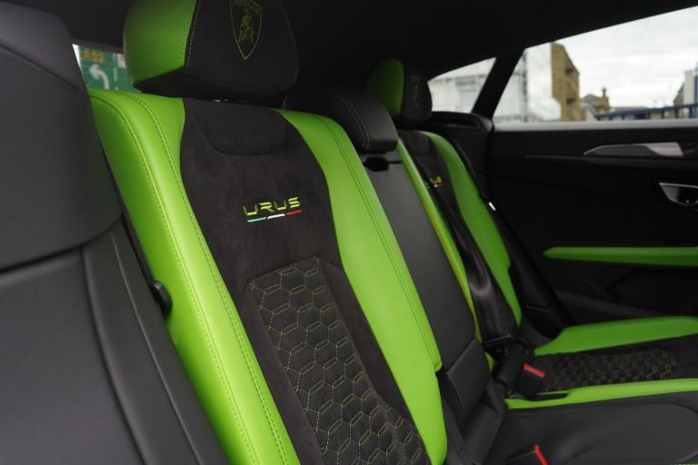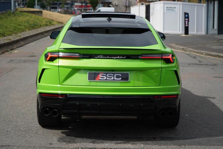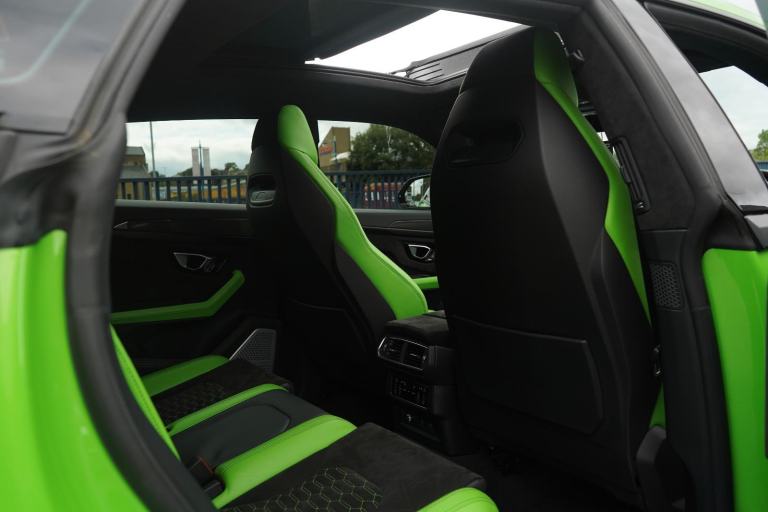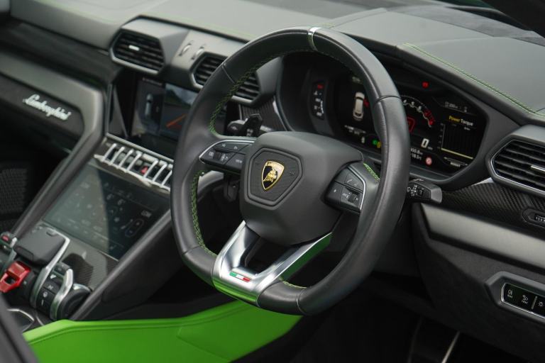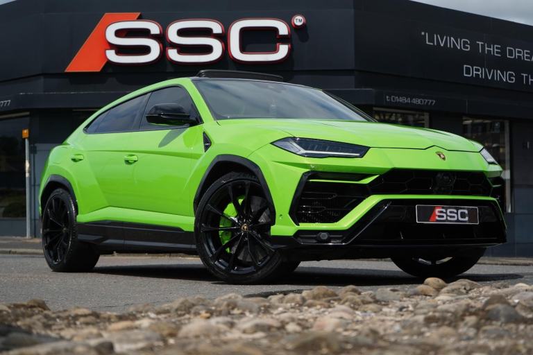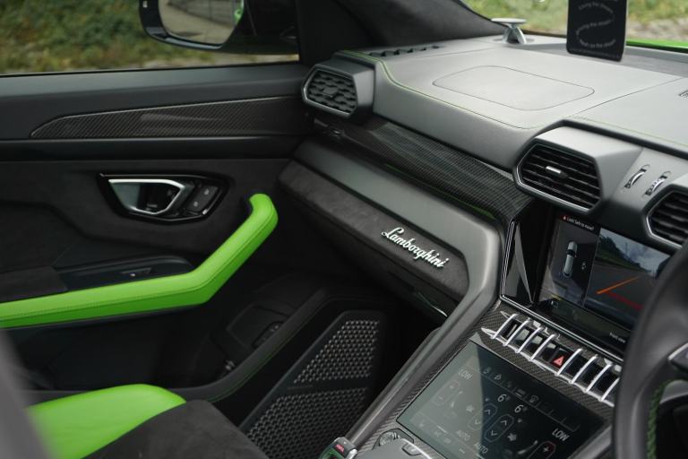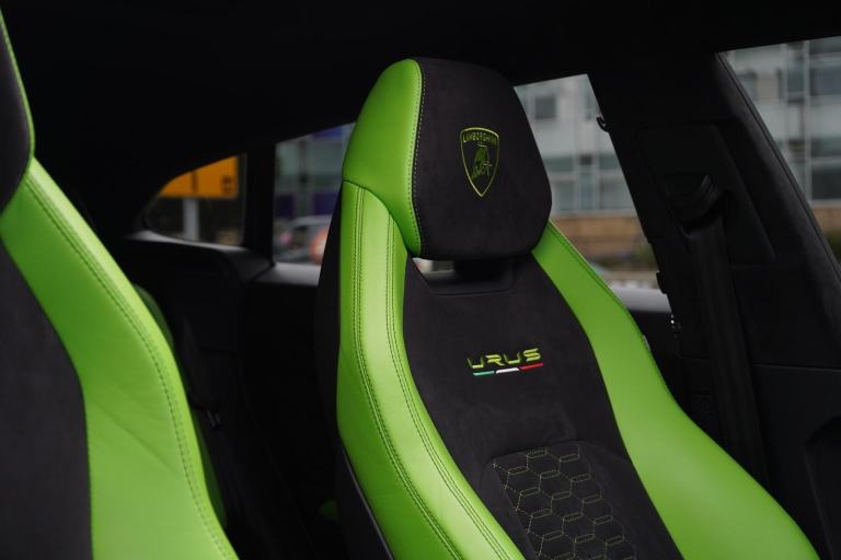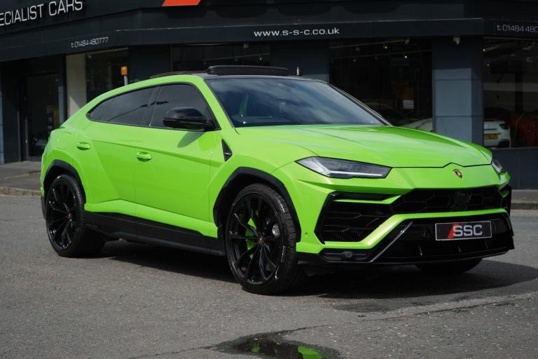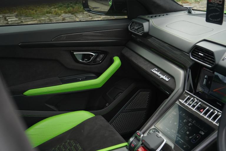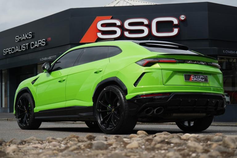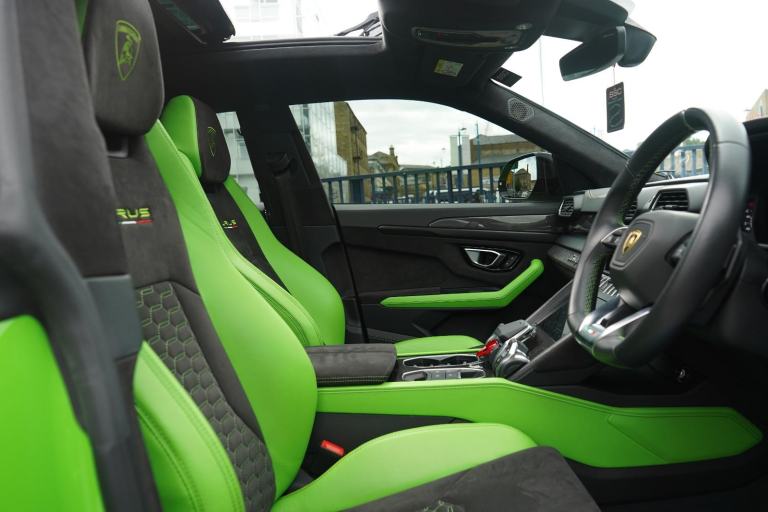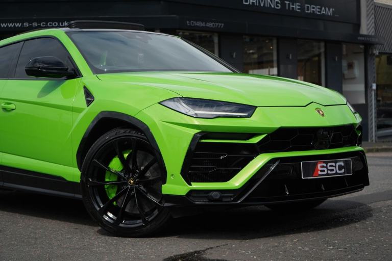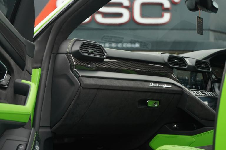 Stunning and Rare Urus Pearl Capsule Finished In Verde Mantis With Q-Citura Nero Ade and Verde Alcantara Interior. Fantastic Spec Inc: Panoramic Sunroof, Capsule Interior Scheme, Carbon Interior Pack, Bang & Olufsen 3D Advanced Surround Sound, Surround Cameras, Park Assist, 23" Taigete Alloys In Shiny Black, Style Pack In Shiny Black, Green Calipers, ADAS, Head Up Display, Lane Assist, Adaptive Cruise Control, Keyless Entry and Start, Alcantara Headliner, Auto Hold Assist. This Urus Comes With Full Service History.