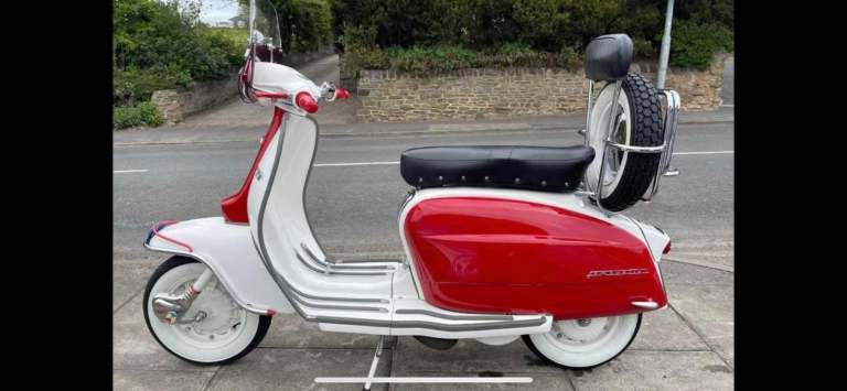 SEASONS GREETINGS …We are proud to offer this Lambretta li150 (186) Italian 1966(D) Chilli red / white, coke cola seat,rear back rack, mudguard protector, continental white walls, front fly screen, chrome butty box cover, upgraded handle grips, stunning scooter please call [Phone number removed]. Others in stock see photos ..please visit us on Facebook STAFFORDSHIRE CLASSIC SCOOTERS