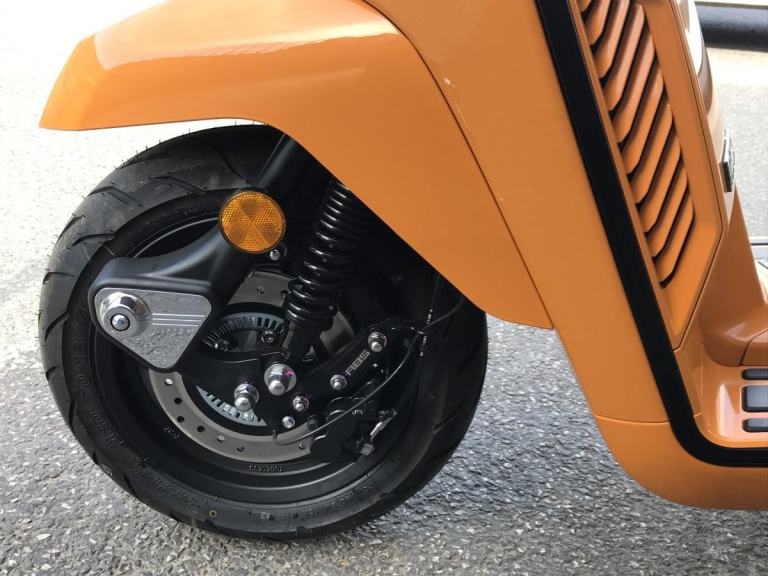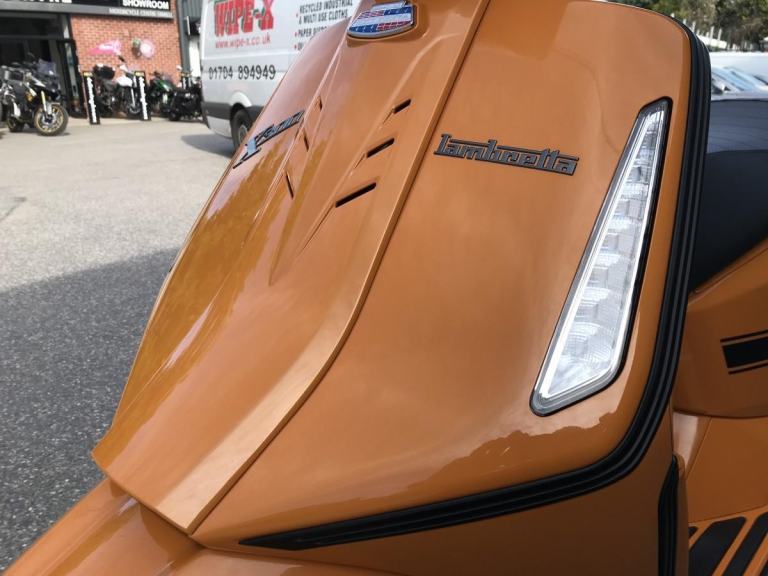 Lambretta embraces the future with Iconic style and panache as always but the need for innovation and the demands of tech are clearly addressed in this new X125 and X300 range. Features such as ABS link brakes, precision crafted X taillight, High performance fully automatic engine, just rev and go, advanced air vent cooling system, keyless entry and start, total LED lighting package, sports seat with luggage hook, under seat storage, semi digital LCD and analogue display ensure all the info you need is on hand. Two years manufacturers warranty as standard. It oozes quality and attention to detail. Whilst heritage is an important part of Lambrettas past, The new range embraces the designs of the future and fits into its more modern environment perfectly. The XR has three colours to choose from. Mustard Yellow, Amaro Red or White Latte.