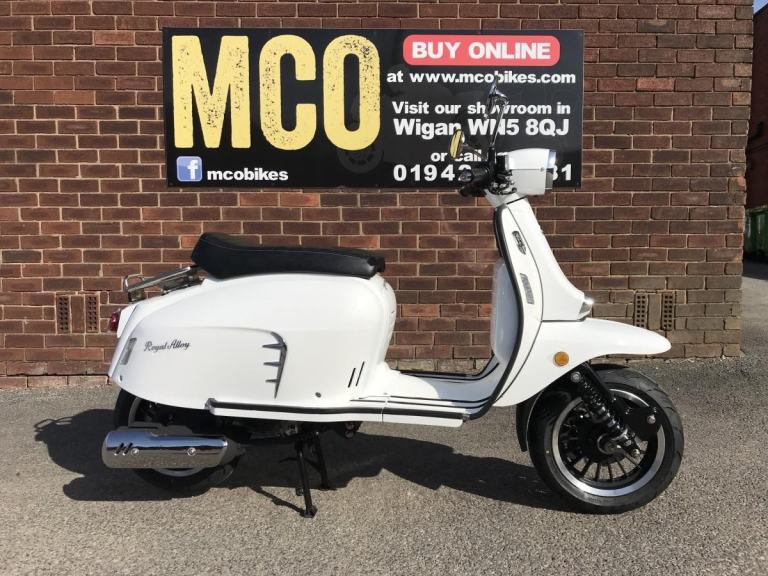 This is a plastic bodied Air cooled fully automatic scooter, Euro 5 engine for smoother power delivery and increased torque. Two years manufacturers warranty with an option to extend to 4 years with Breakdown roadside assistance packages. Combined braking system (CBS). as standard and jaw dropping classic looks. Buy with confidence from the number one Royal Alloy dealer in the North West, Wigan the home of northern soul and a vibrant scooter scene. All colours available, and even bespoke custom designs to suit your budget.. All prices are plus OTR. Nationwide delivery and finance available. Buy online at [Website URL removed] or call our sales team on 01942 218181 or WhatsApp [Phone number removed].