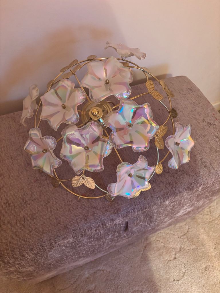 1970's milk floral glass globe lamp shade