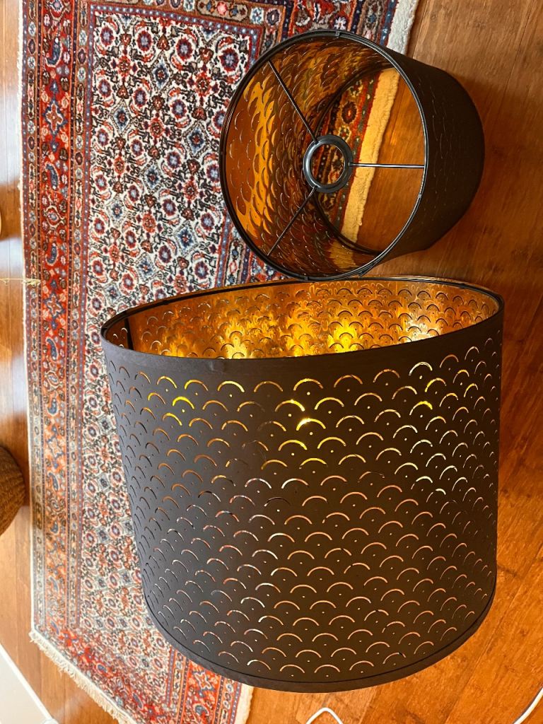 2 wIKEA dark grey and golden lamp shades. See measurements in images. Selling as room redecorated.