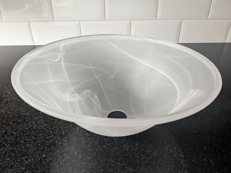 Alabaster glass lamp shade. Suitable for E27 light fitting (or smaller with adapter ring).