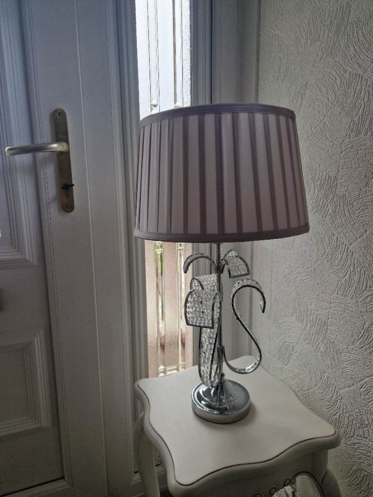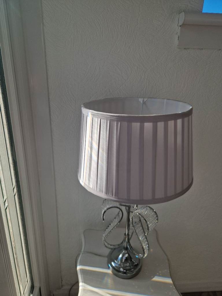 Chrome crystal bead style pale grey pleated shade