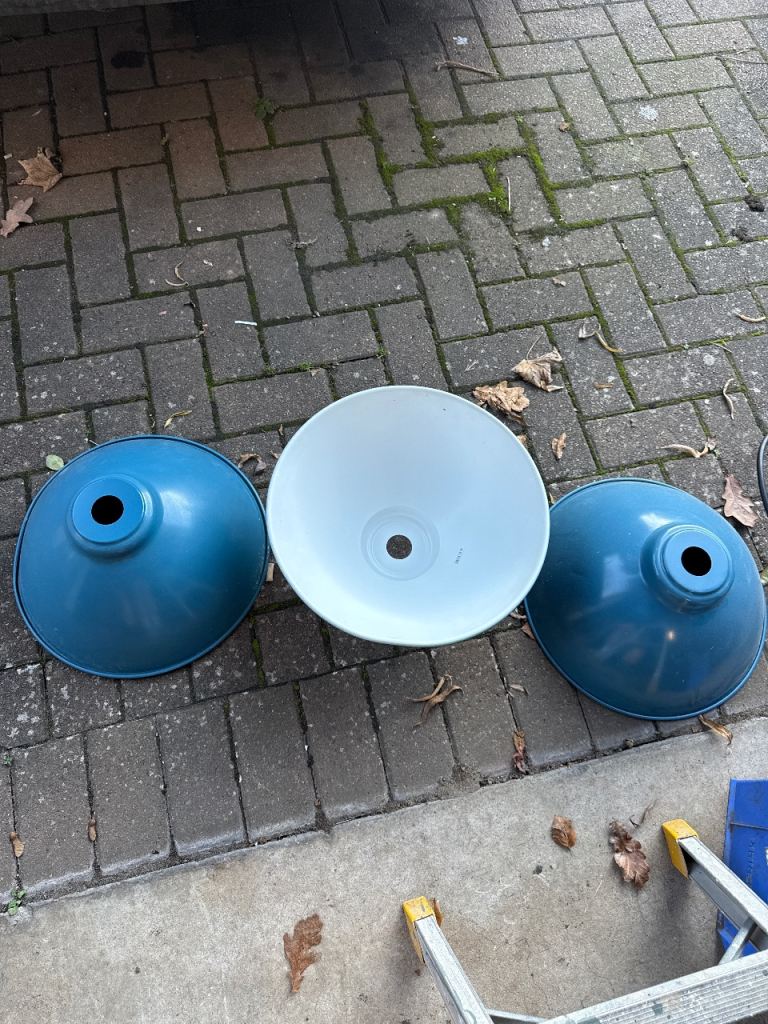 Decluttering and giving away a set of IKEA metal lampshades in a striking blue finish — perfect for adding a pop of colour or an industrial edge to your space.
