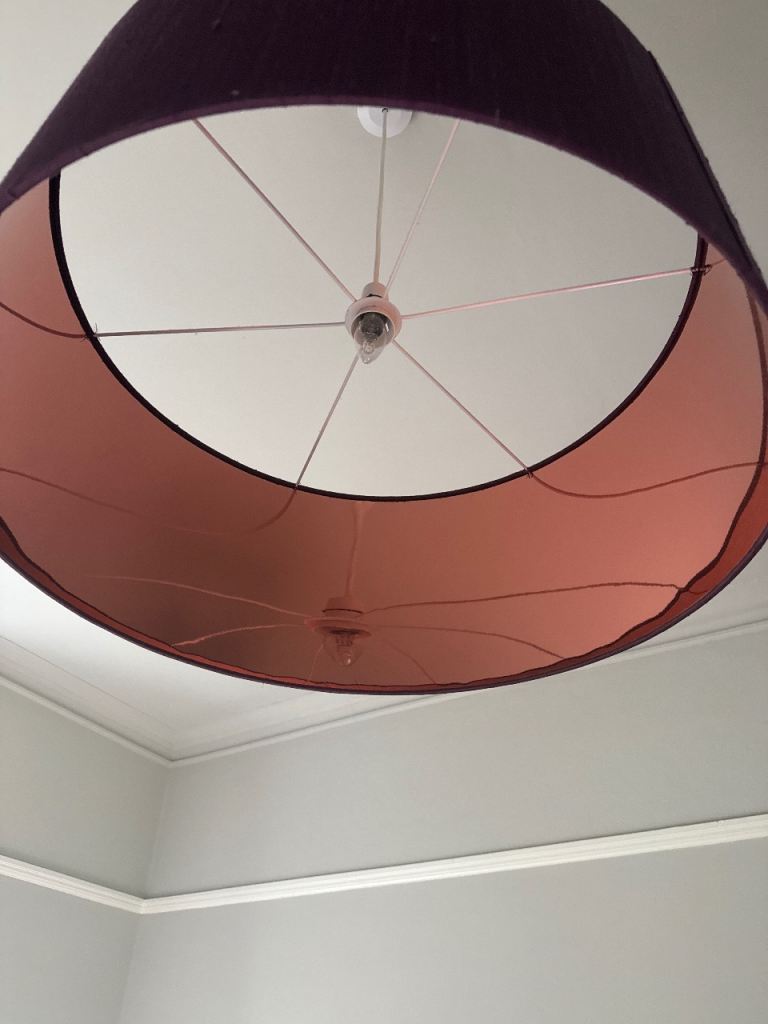 Posting for 11+ yearsLarge Purple Fabric Lampshade with Copper Inner