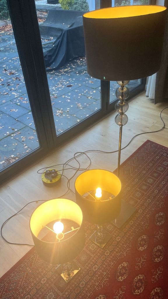 1 x tall lamp (149cm) and 2 x matching table lights (58cm high)