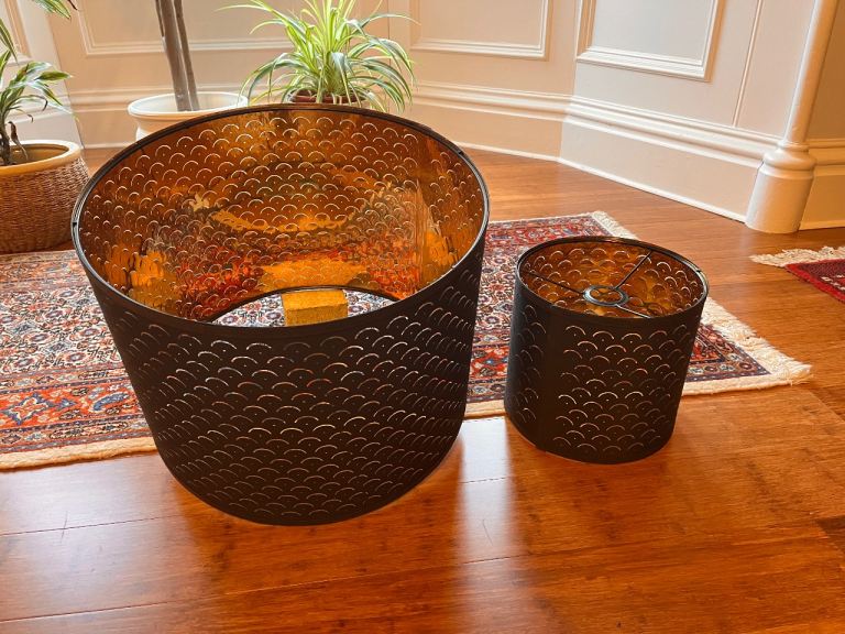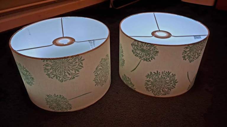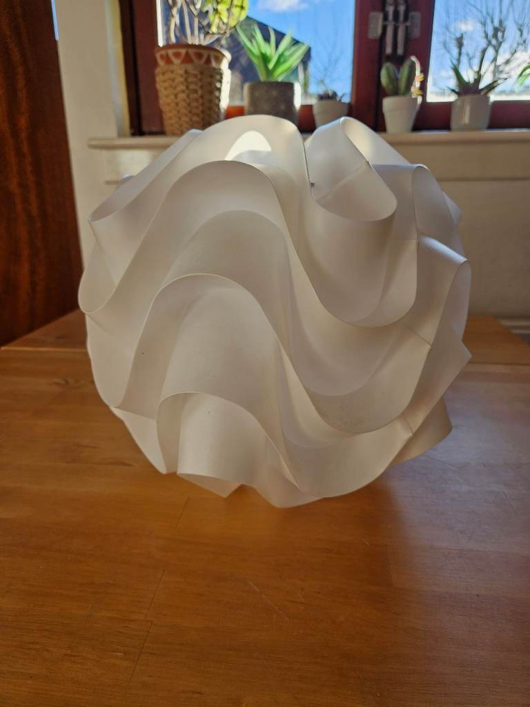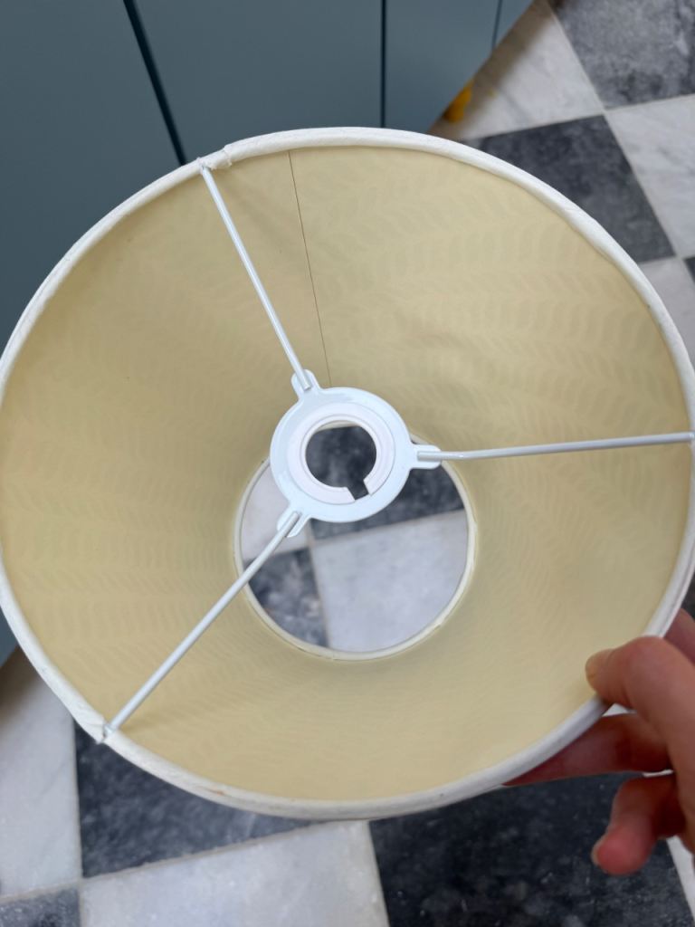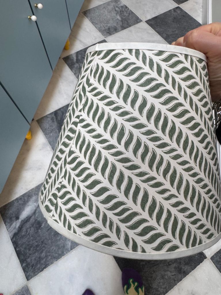 Rosi de Ruig Delphine Petite Lampshade T15 x B25 x H20 with bottom utility fitting. Card is hand printed in a dark green on ecru background. In good condition but does have some light marks - please see pictures. rrp £144