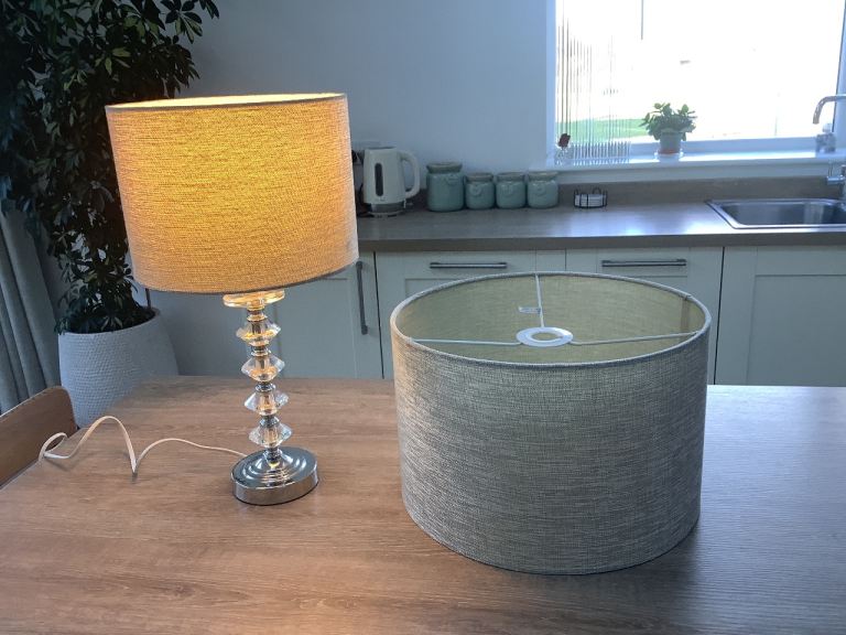 Table lamp & Phillips bulb with matching large lampshade grey / beige
