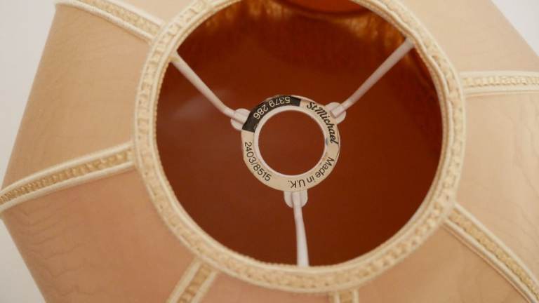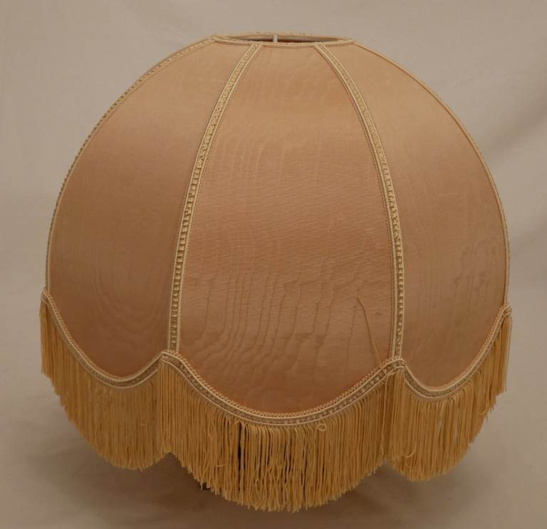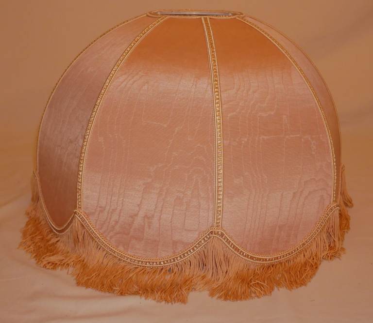 Hardly used vintage lightshade with fringe from Marks & Spencer in light pink fabric in “as new” condition.