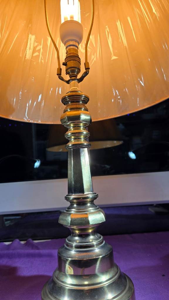 A beautiful old vintage Lamp with a new cream shade. 29" tall.