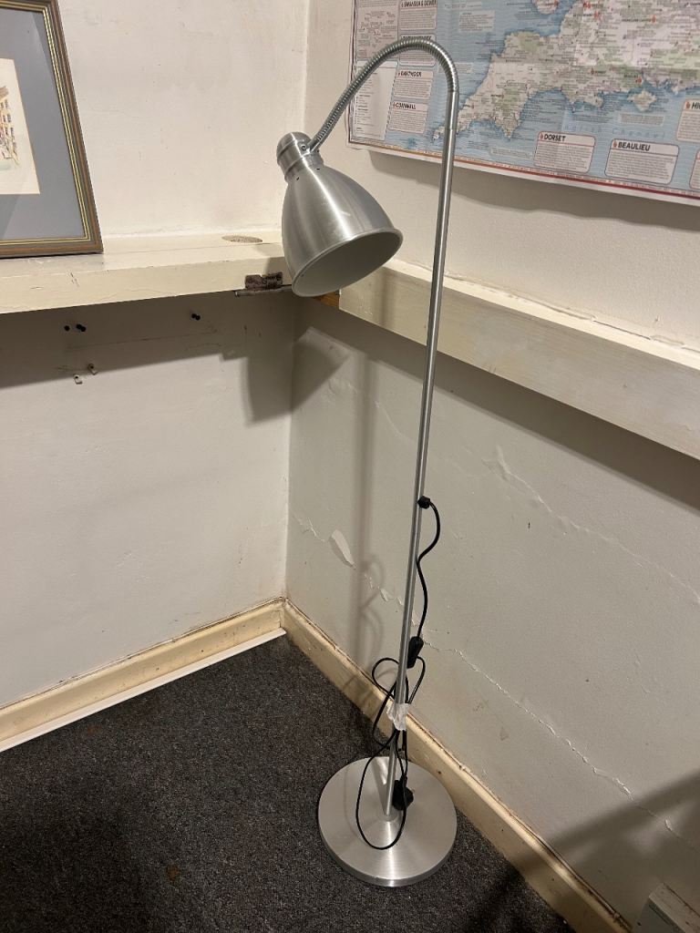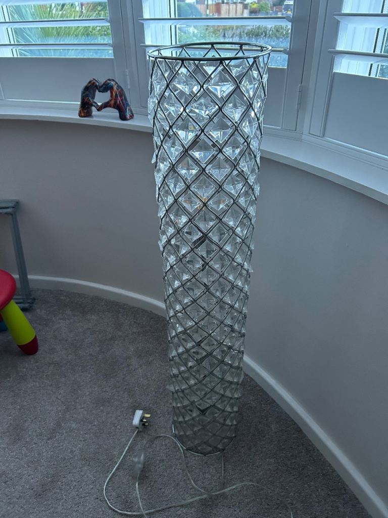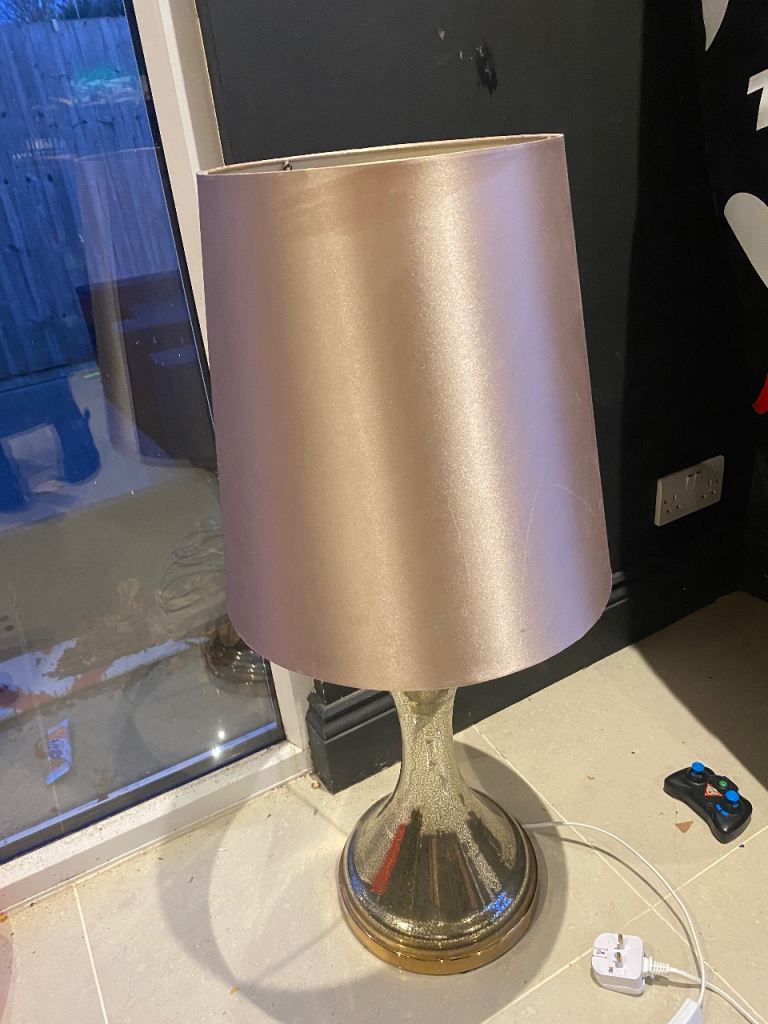 Ikea table lamp that creates a soft cosy mood light. The shade is like a bucket with no open top. It looks very pretty turned on. This light blue colour is no longer available at Ikea. It comes with 3 bulbs. You have to buy bulbs separately when you buy the lamp at Ikea so this is a big bonus. Its 29cm tall.