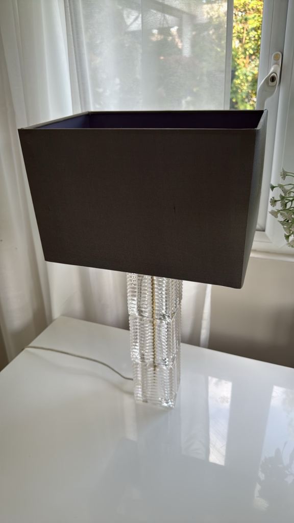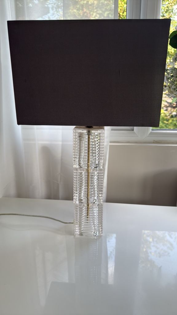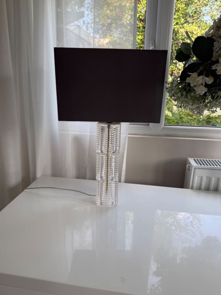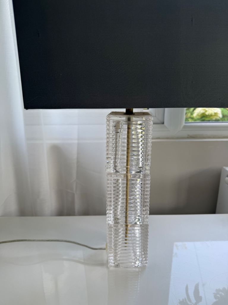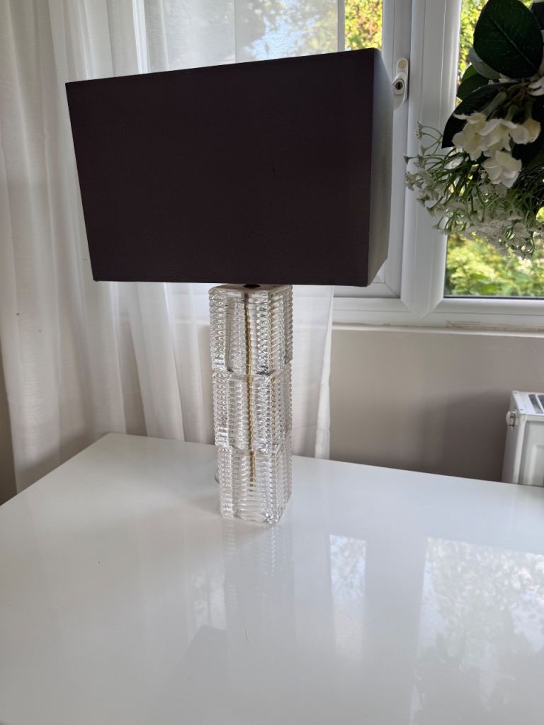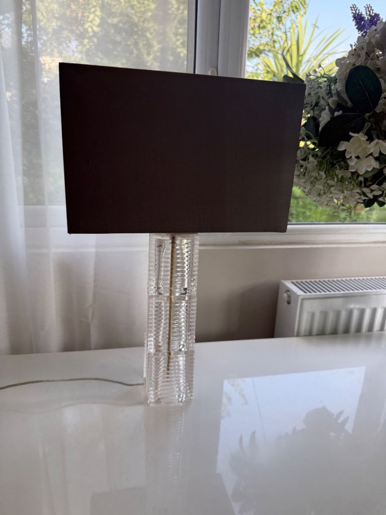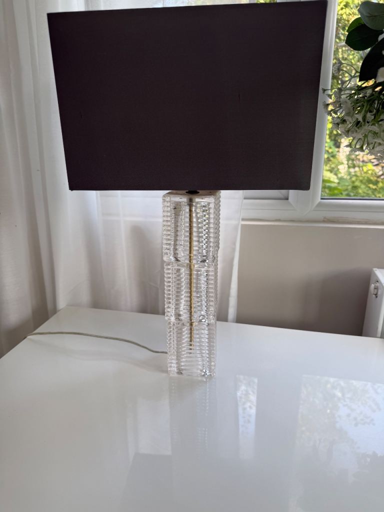 A pair of John Lewis table lamps Ribbed glass base with a dark grey lamp shade