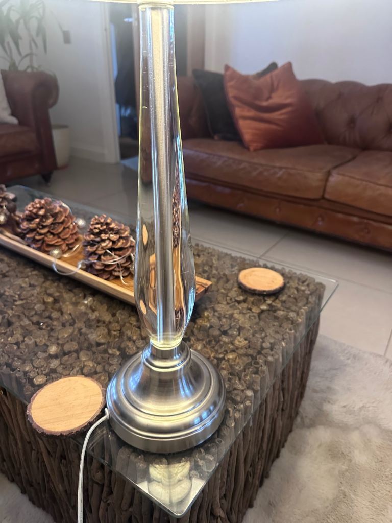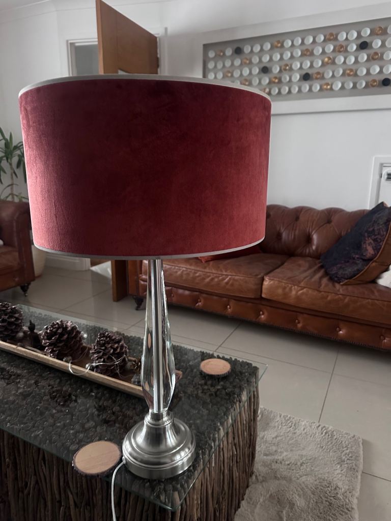 Beautiful glass lamp and velvet rust lampshade