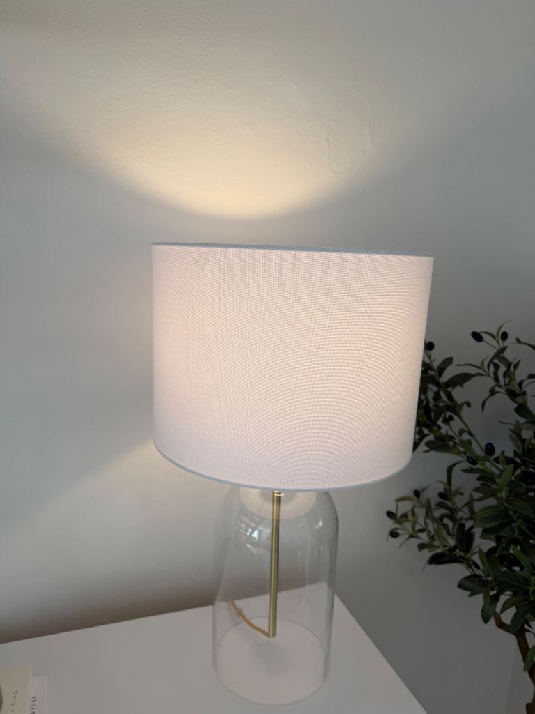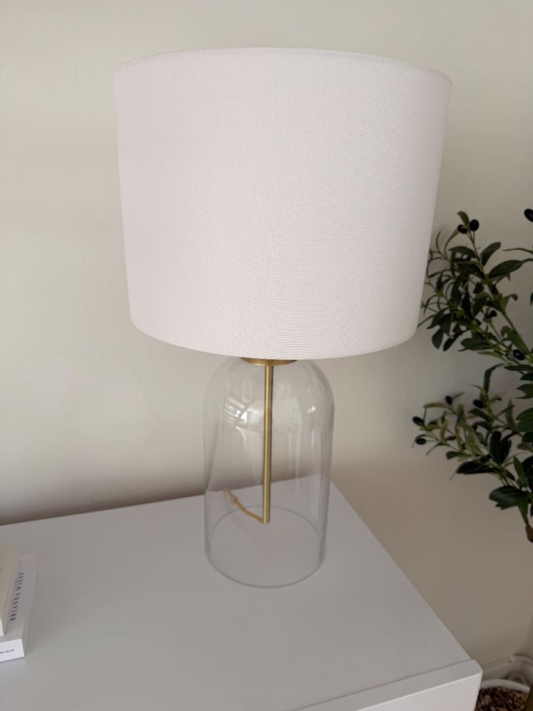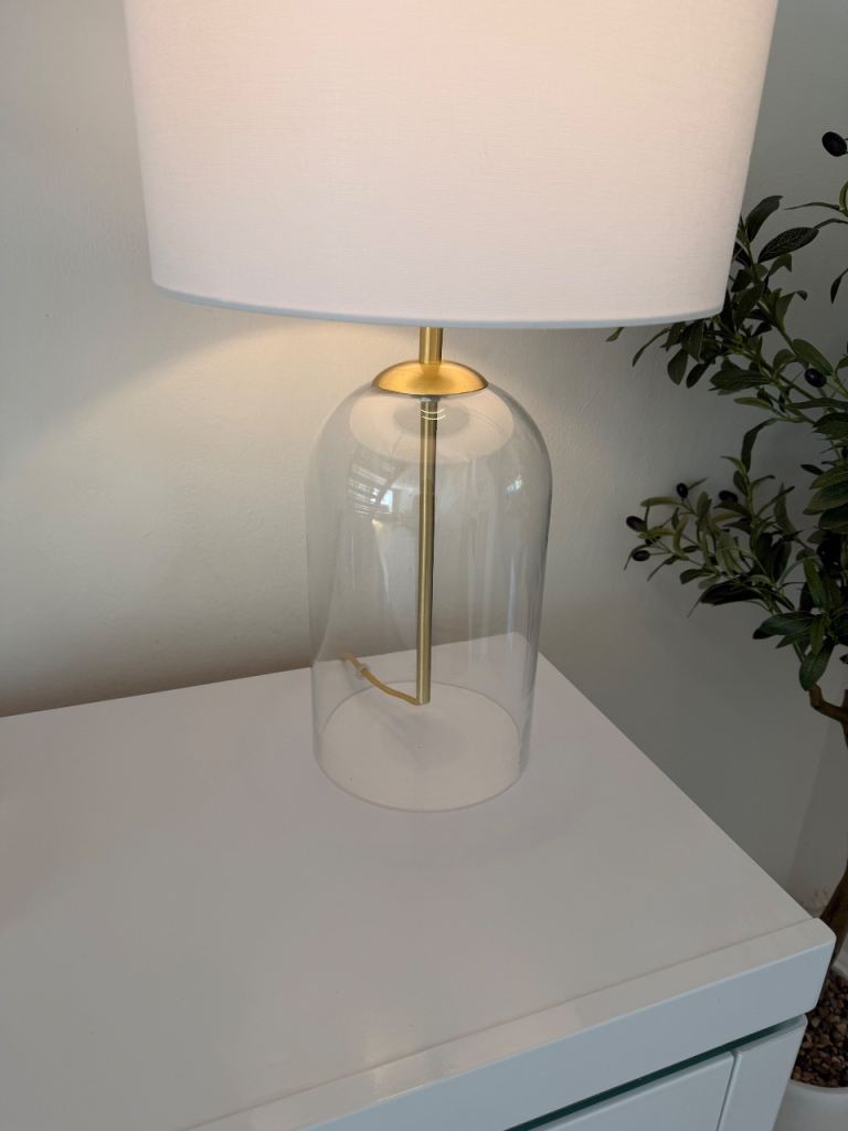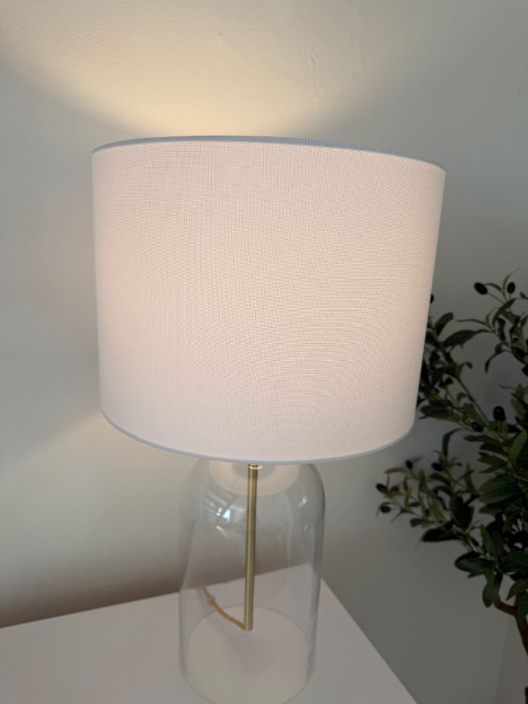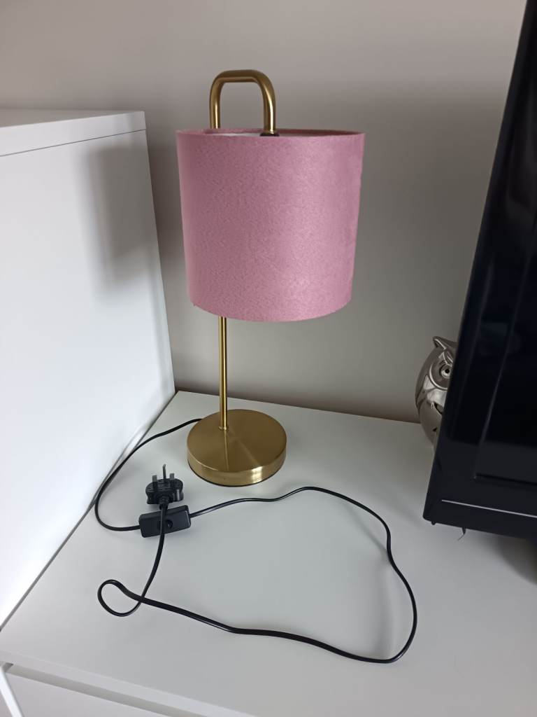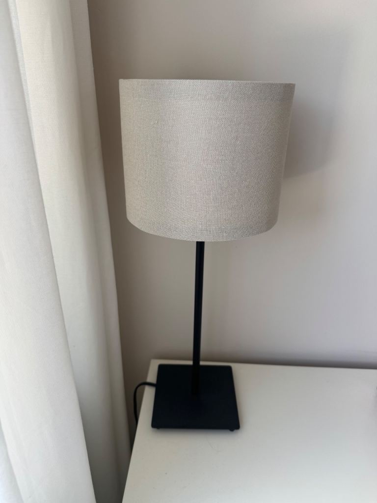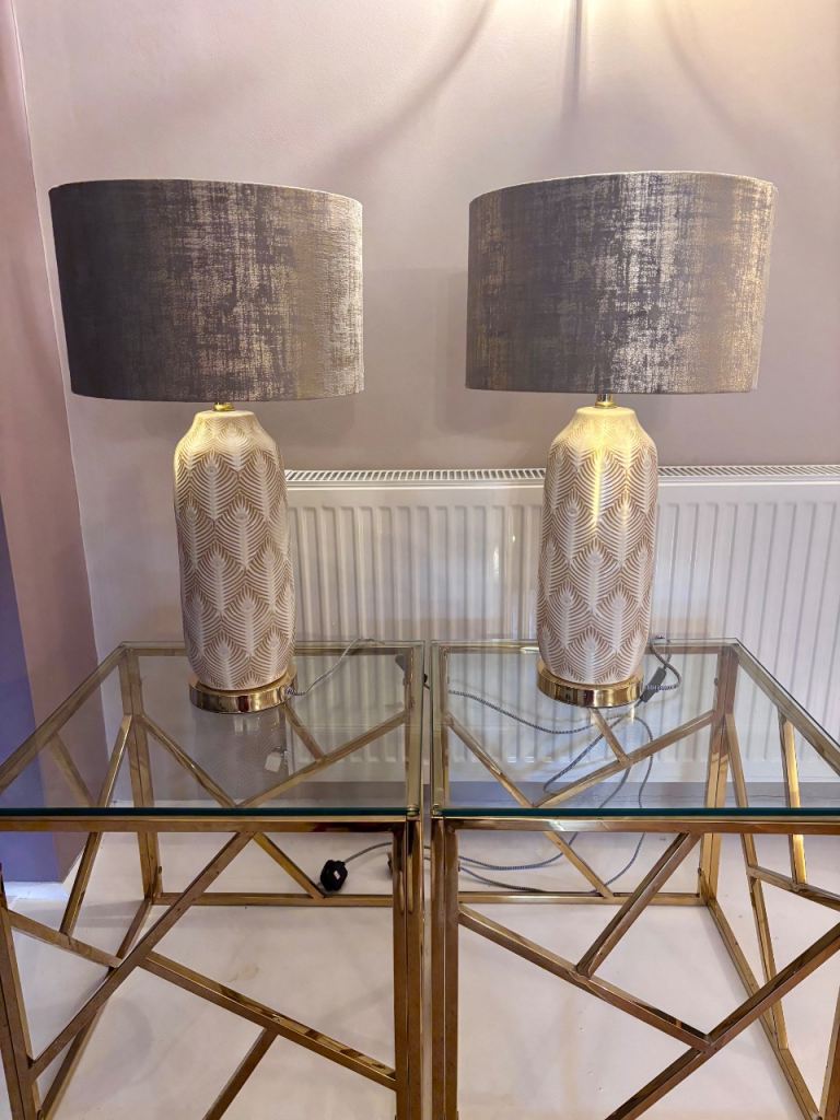 Beautiful lamp white line. Shade lovely gold accent cord same colour